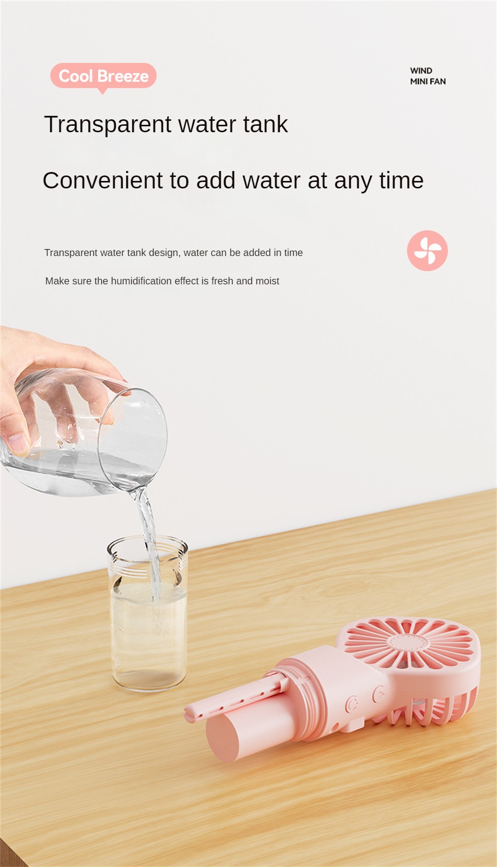 Introducing the "Icy Breeze Portable USB Humidifying Fan" – the ultimate solution for staying cool and refreshed wherever you go. This innovative device combines the functionality of a powerful fan with the soothing effects of a humidifier, ensuring you stay comfortable and hydrated during the hot spring and summer months. Perfect for home, office, or travel, this compact and stylish fan is a must-have accessory for beating the heat.
