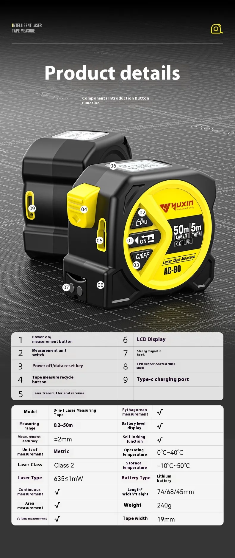 Measuring range: 0-50m