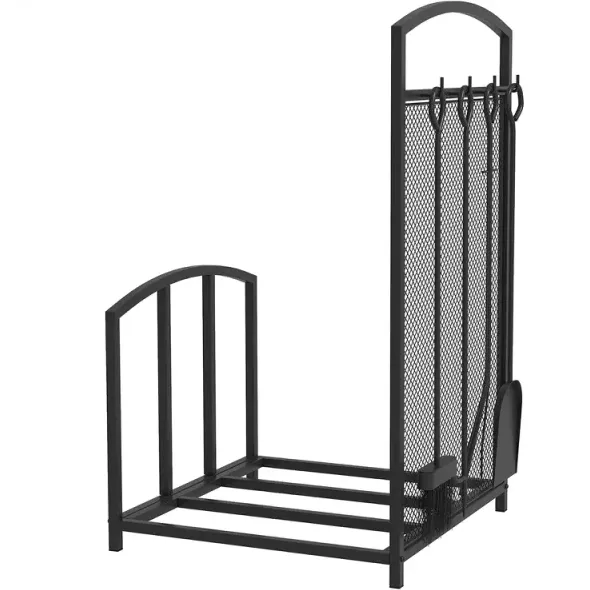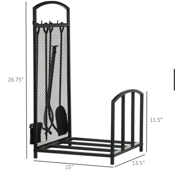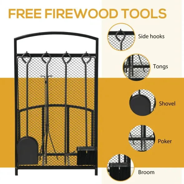Fireplace Tools: Why look for accessories too? Our indoor firewood holder includes a tool set to ensure everything is included. The accessories include a poker, broom, shovel, and tongs to keep your fire safe, clean, and efficient.