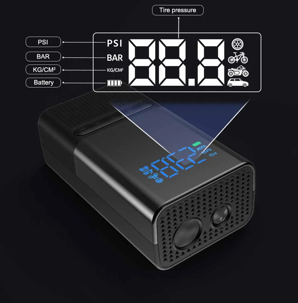 - Preset Pressure Settings: Allows you to set desired pressure levels for different tire types.