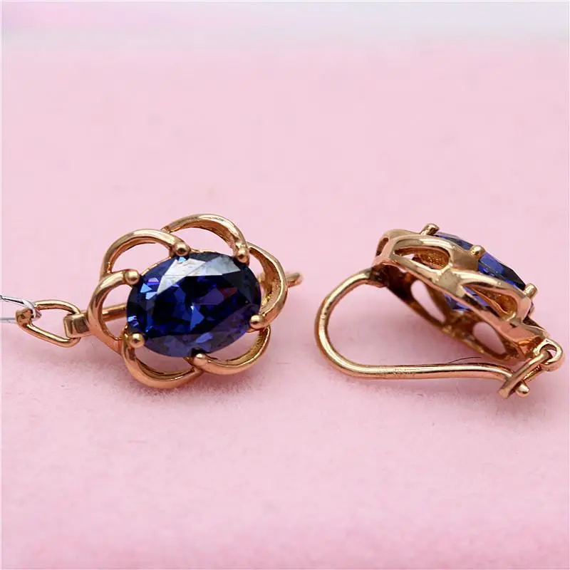 Inlaid Blue Stone Lace Purple Gold Earrings