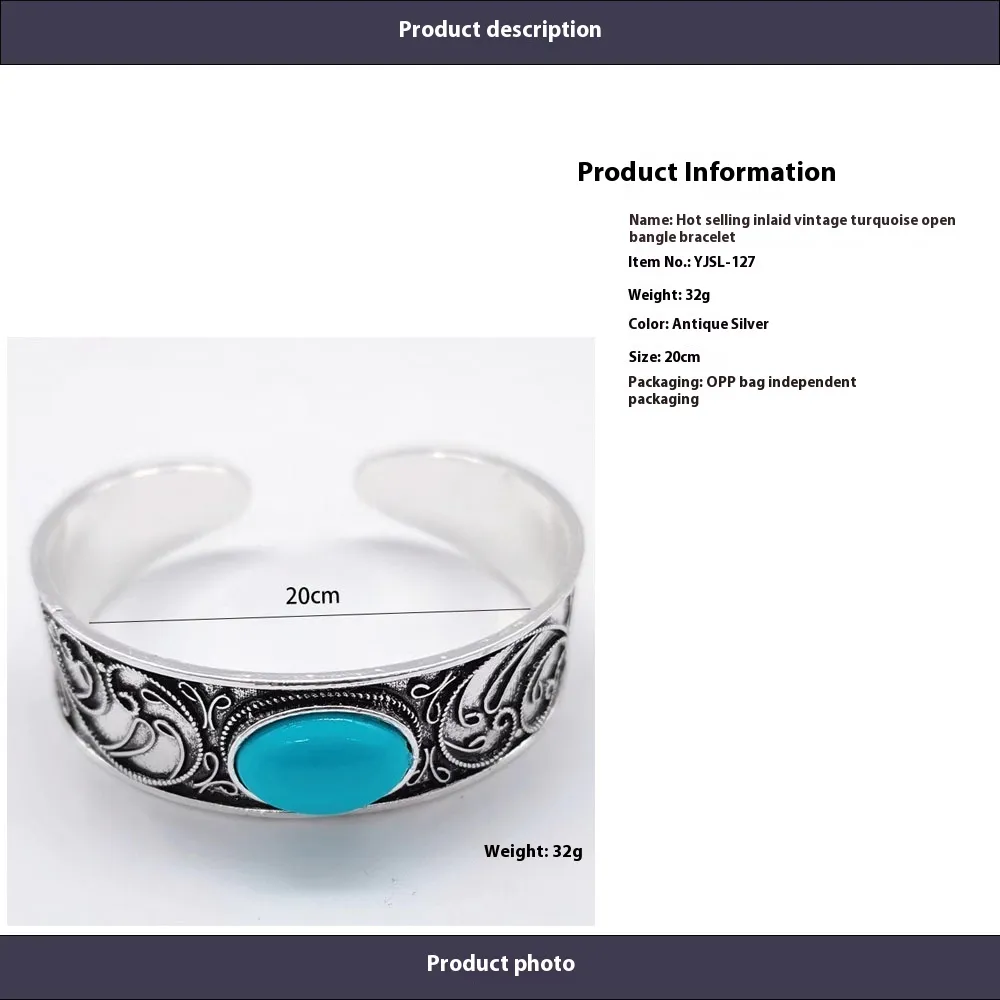 Home › Plants, Gifts, Toys & More › Gift-tree-inlaid-retro-turquoise-open-ended-bracelet