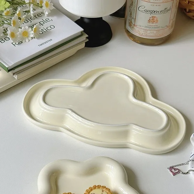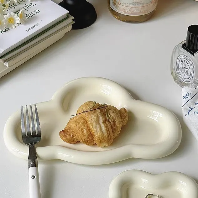 Ins Style Good-looking South Korea Cream Tableware Ceramic Cloud Dessert Plate