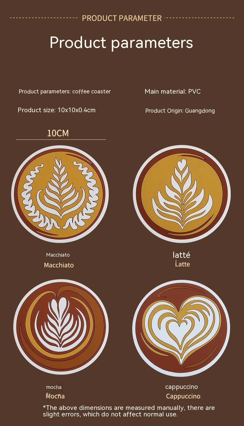 Color: Mocha, latte, macchiato, cappuccino