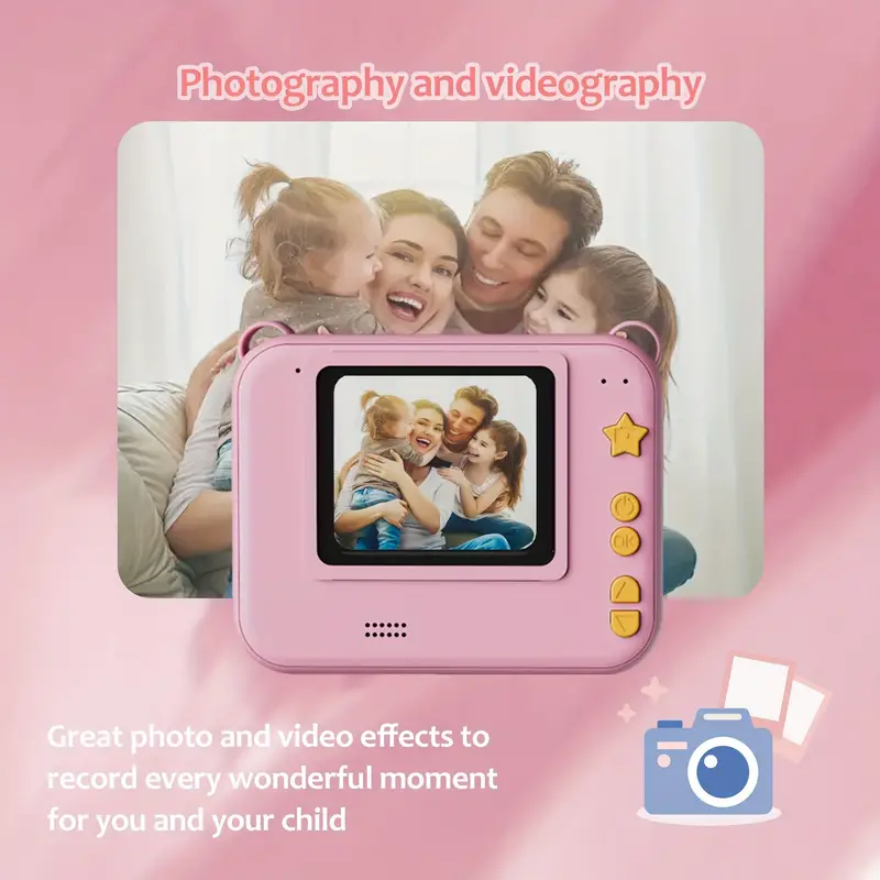 Instant Print Digital Camera for Kids, HD Video, Rechargeable 1500mAh Battery, Timer Function, with 3-12 Years Old, for Christmas & Birthday Gifts