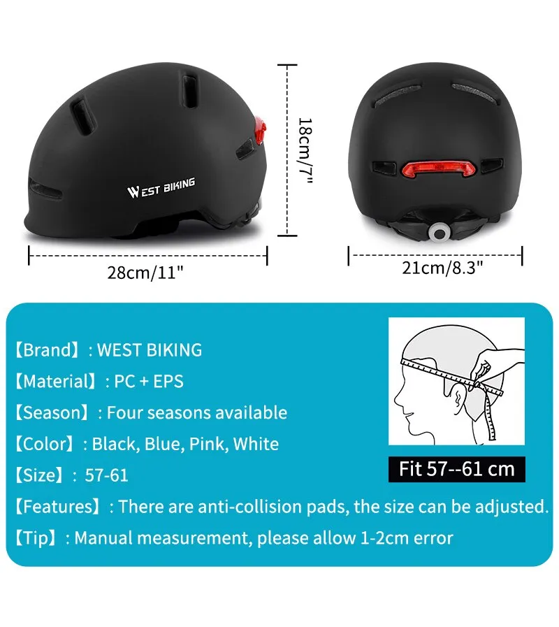 Color classification: Black-with taillight models[suitable for head circumference 55-63CM] white-with taillight models[suitable for head