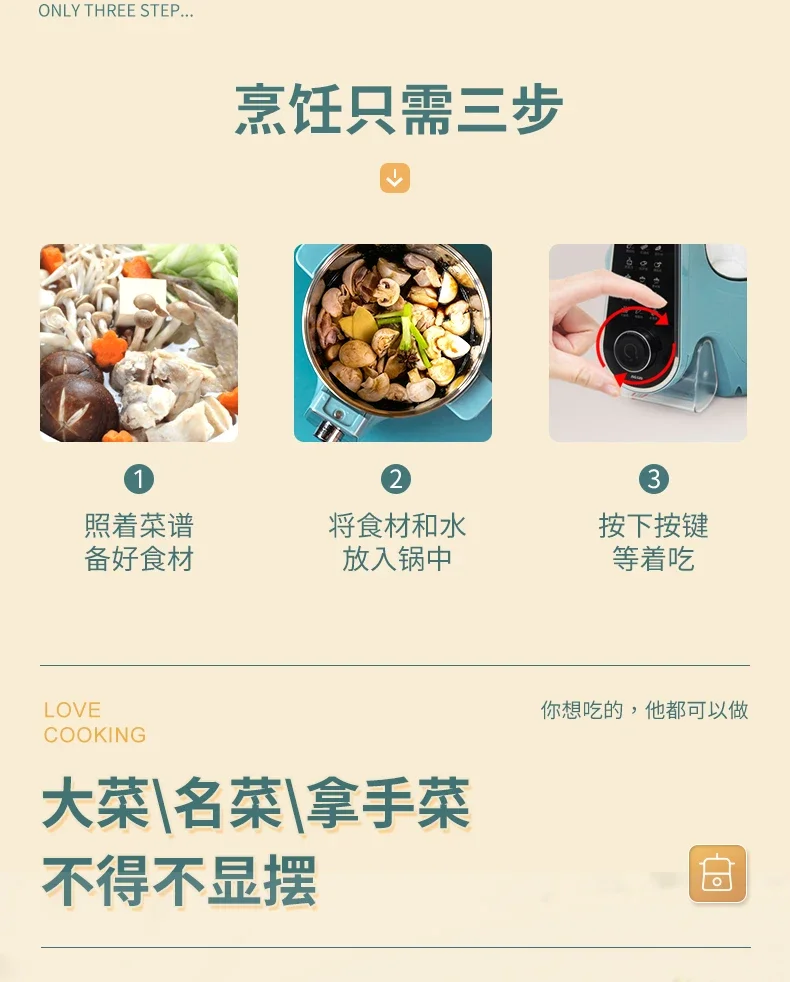 Easy to Clean: The non-stick cooking pot and removable components are easy to clean, ensuring hassle-free maintenance. The