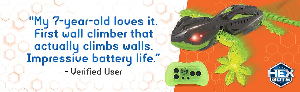 - Includes: 1 HEX BOTS Wall Crawler Gecko, 1 Remote Control, 1 Charging Cable, 1 Instruction Guide