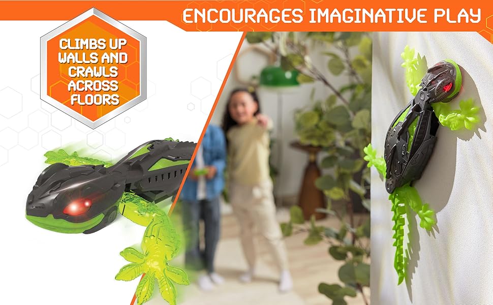 - WALL CRAWLING MOVEMENT: Watch the creepy-crawly motion of the Wallcrawler robot toy as it crawls across the floor and climbs up walls, just like a real gecko Scare your family and friends with the life like movement