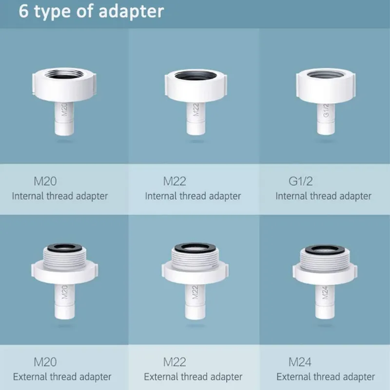 3、USB Charging: 6 sets of adapters can be adapted to any faucet. Using USB charging, the charging time is about 3 hours, which can provide