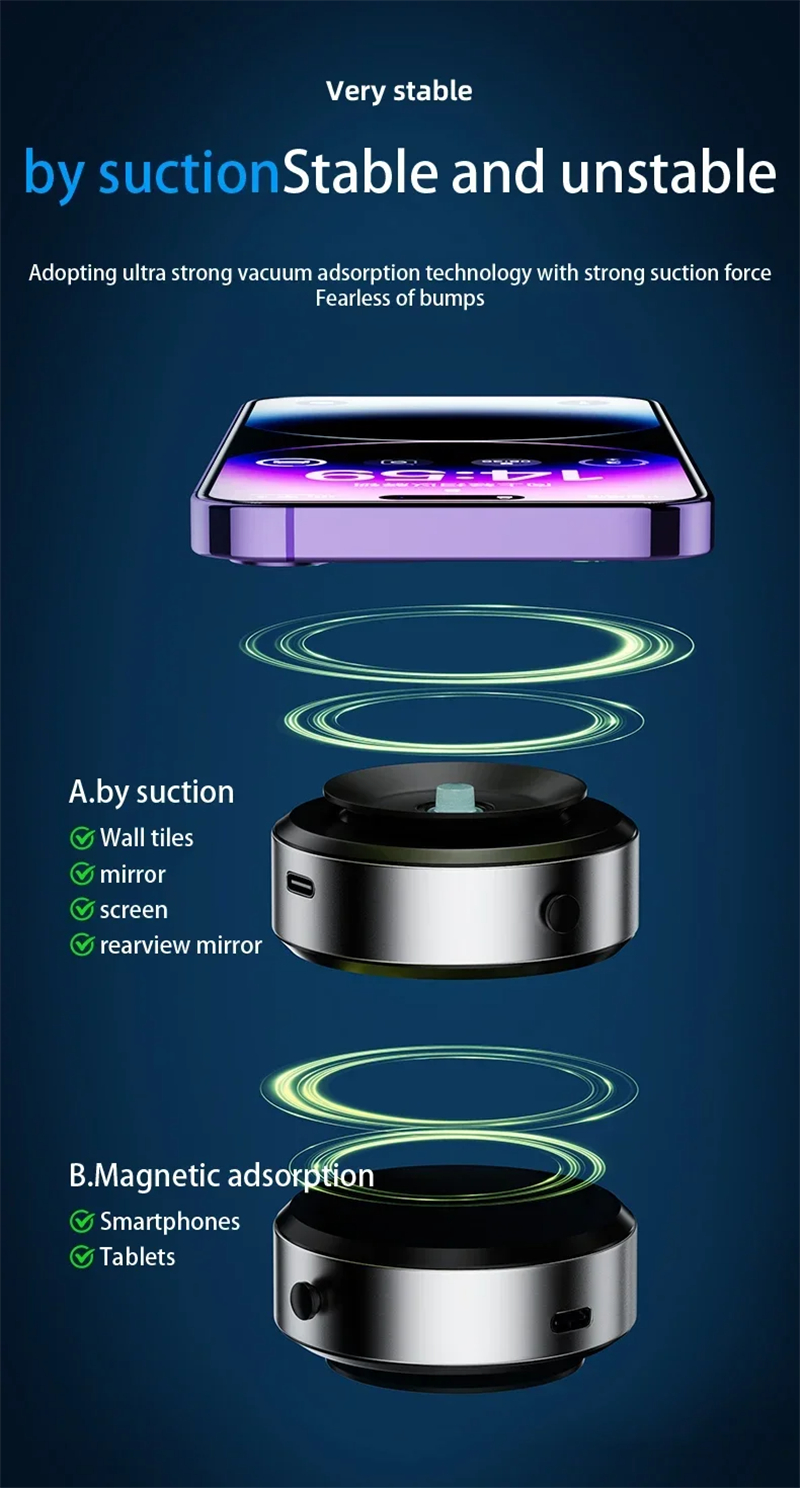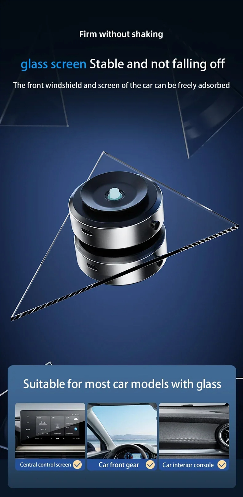 find the best navigation angle for your needs. Due to its compact design, our magnetic car suction cup holder will not block your driving