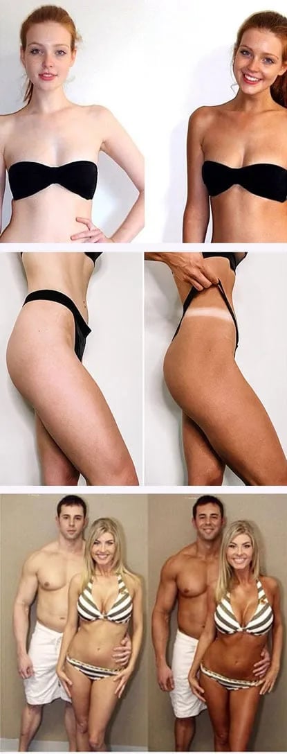 This is a before and after just an hour apart. I usually tan fast but never like this. It smells so good a little goes a long way,