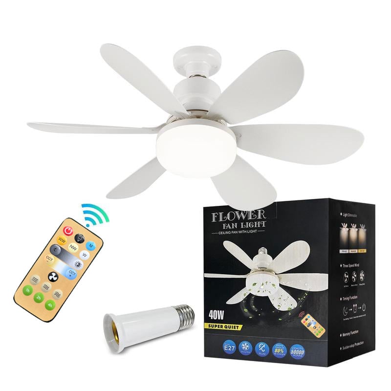 The 40W Socket Ceiling Fan Light is the ultimate solution for those looking to enhance their space with both cooling and illumination in a single, stylish unit. This innovative product combines a powerful ceiling fan with a bright, energy-efficient LED light, making it perfect for any room in your home or office. Designed to fit into a standard E27 socket, this ceiling fan light is easy to install and provides a quick and efficient way to upgrade your living space without the need for extensive wiring or modifications.
