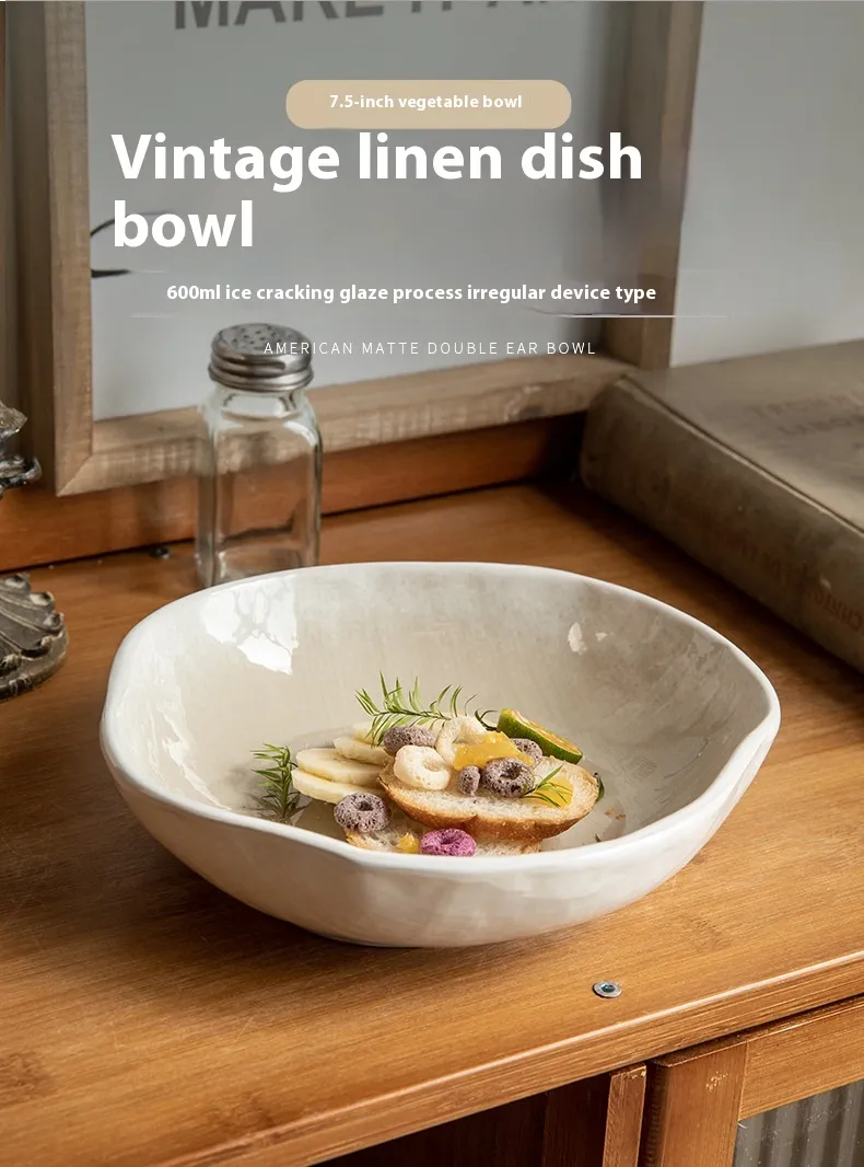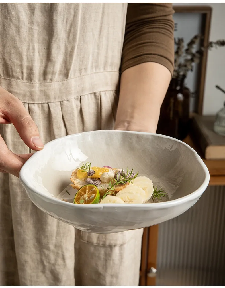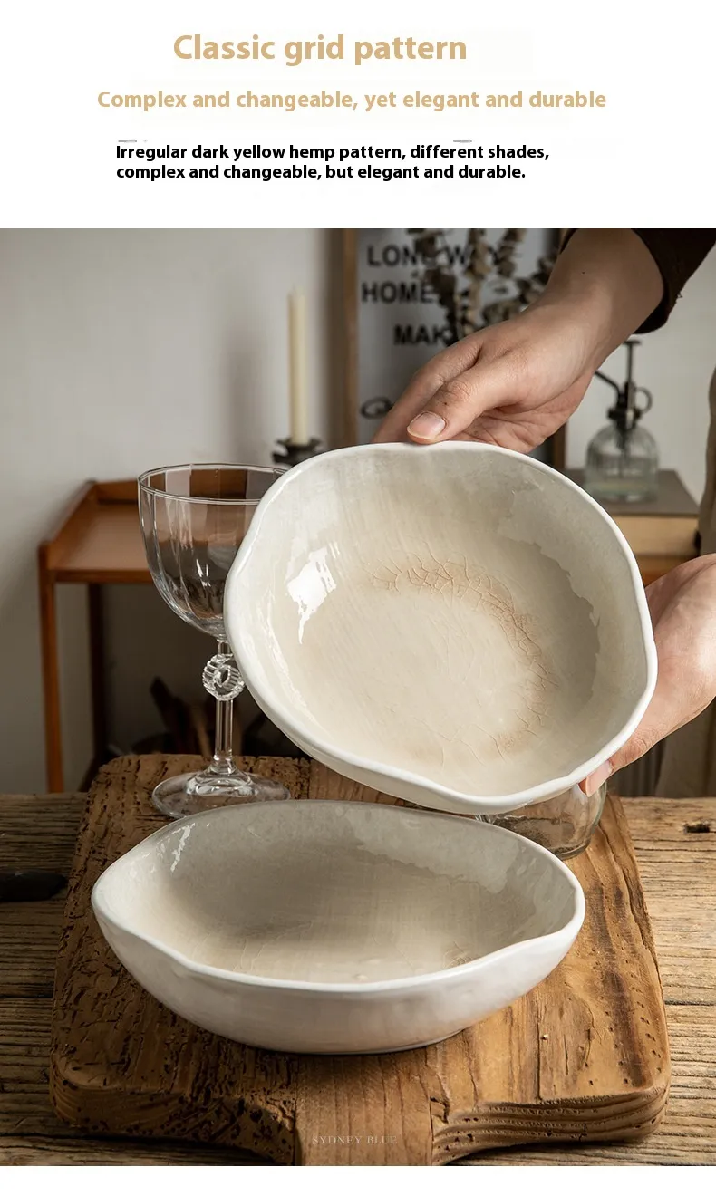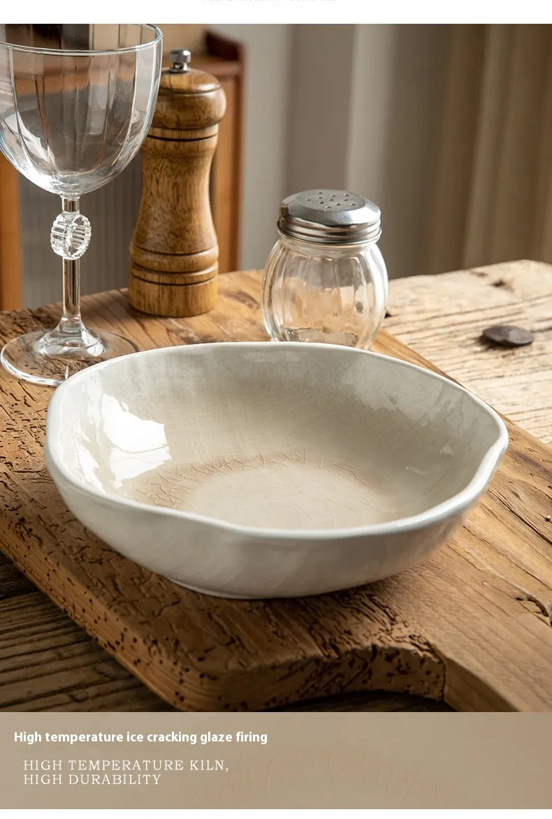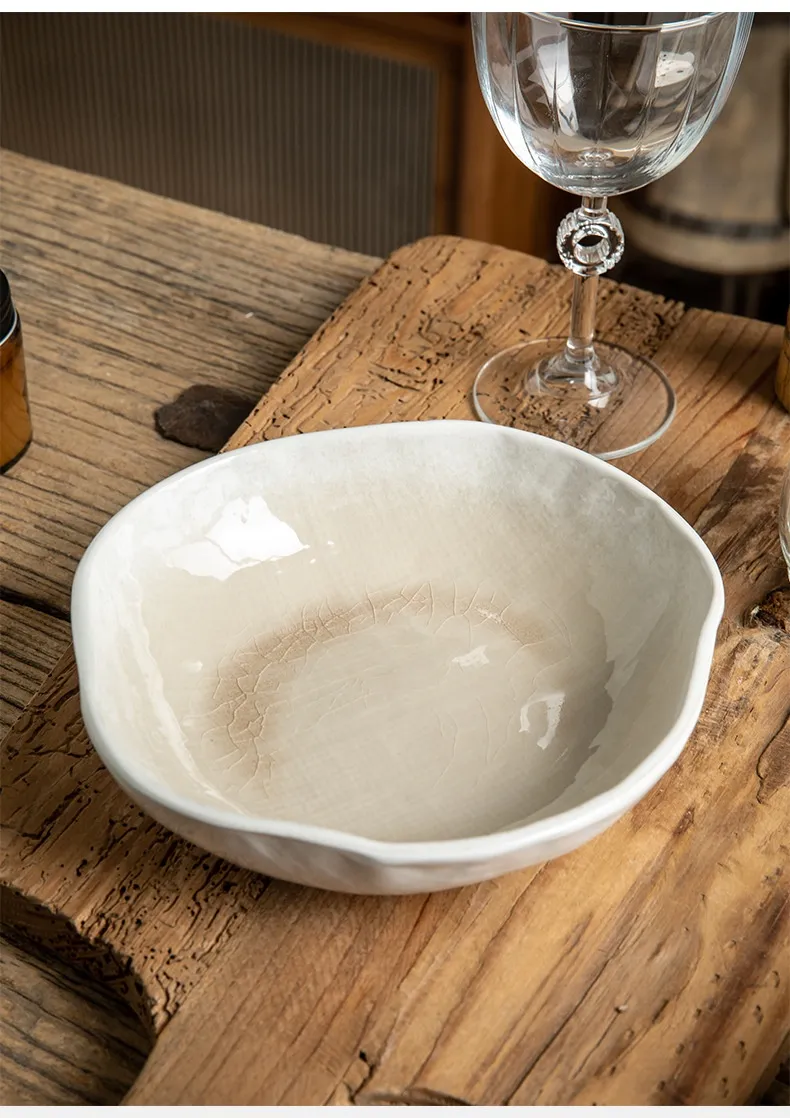 Irregular Ceramic Shaped Crackle Glaze 75 Inch Salad Bowl