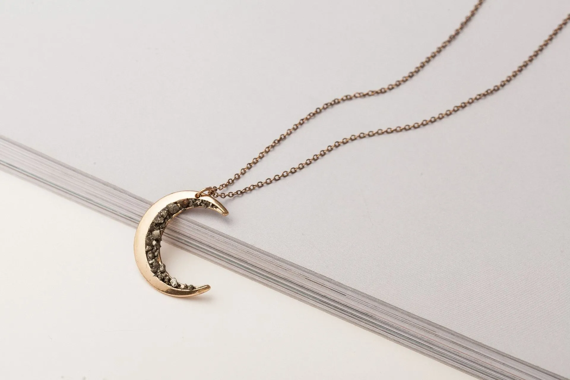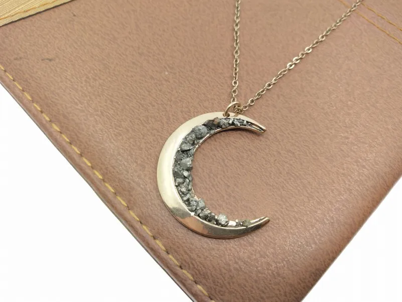 Irregular Crescent Moon Necklace With Diamonds