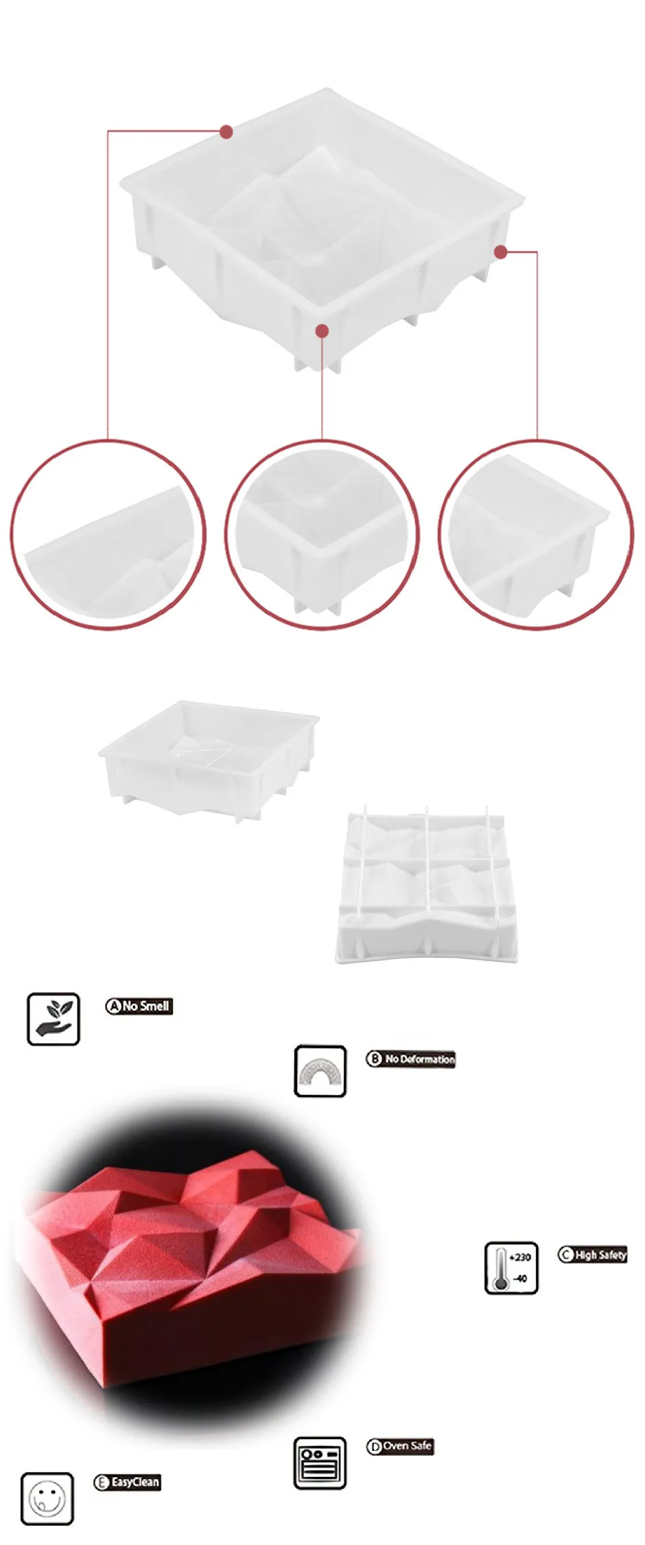 Silicone molds are an essential tool for creating intricate and irregular geometric shapes in cakes, chocolates, or other desserts. These molds come in a variety of designs, allowing bakers to create everything from angular cake layers to geometric chocolate pieces. Silicone molds are flexible, making it easy to release the finished product without damaging delicate designs.