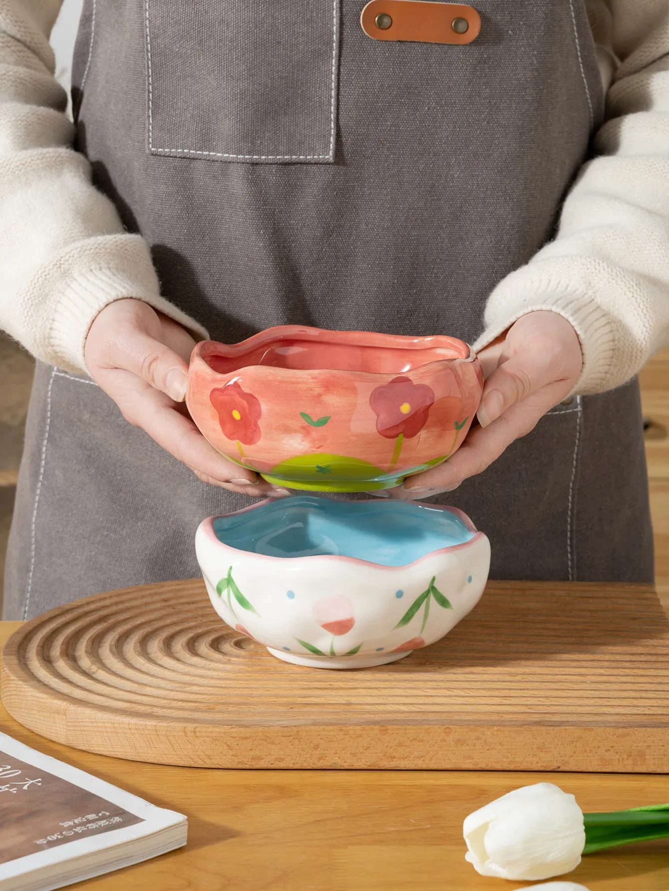 Color: red hand painted bowl, white hand painted Bowl