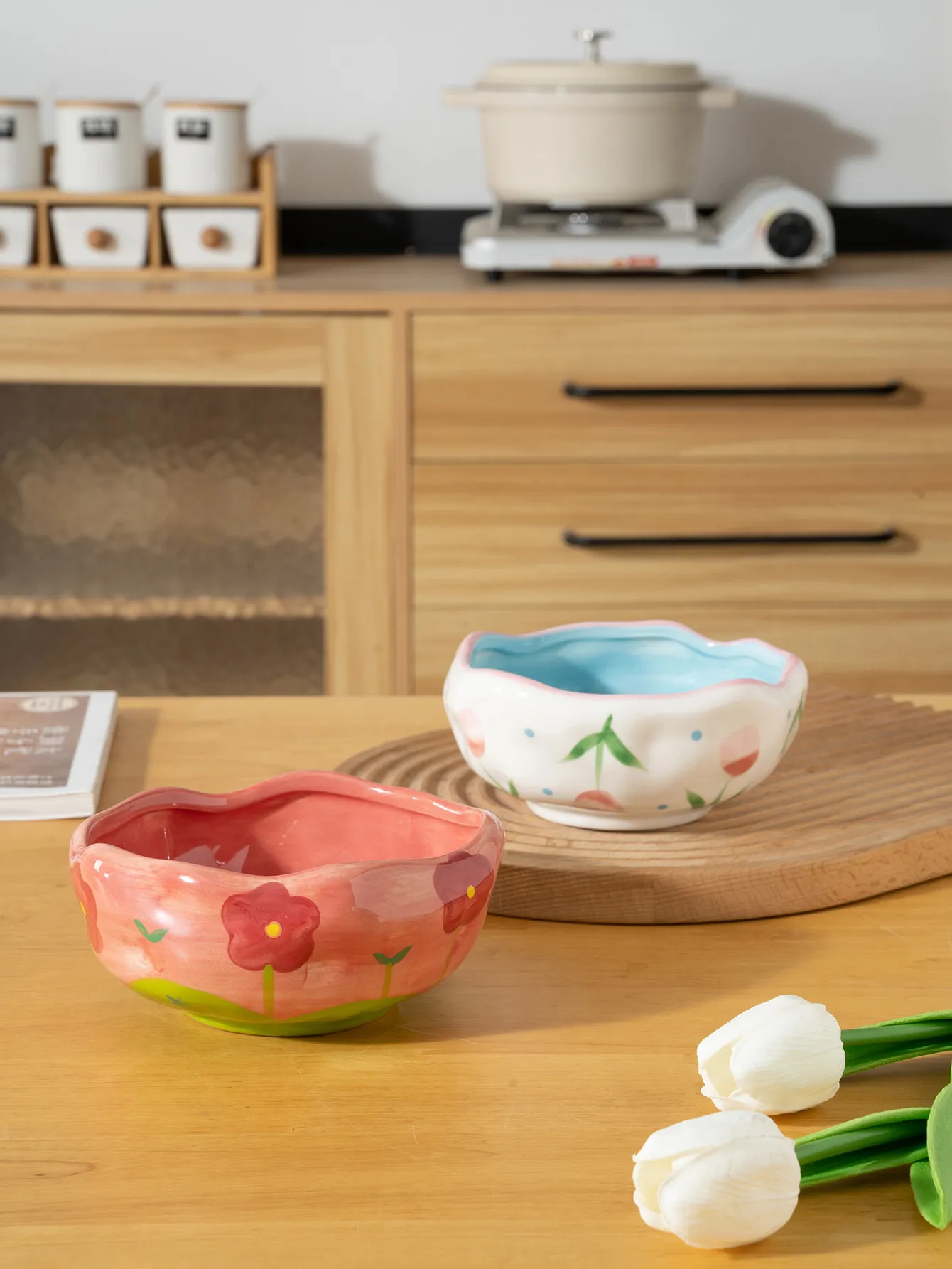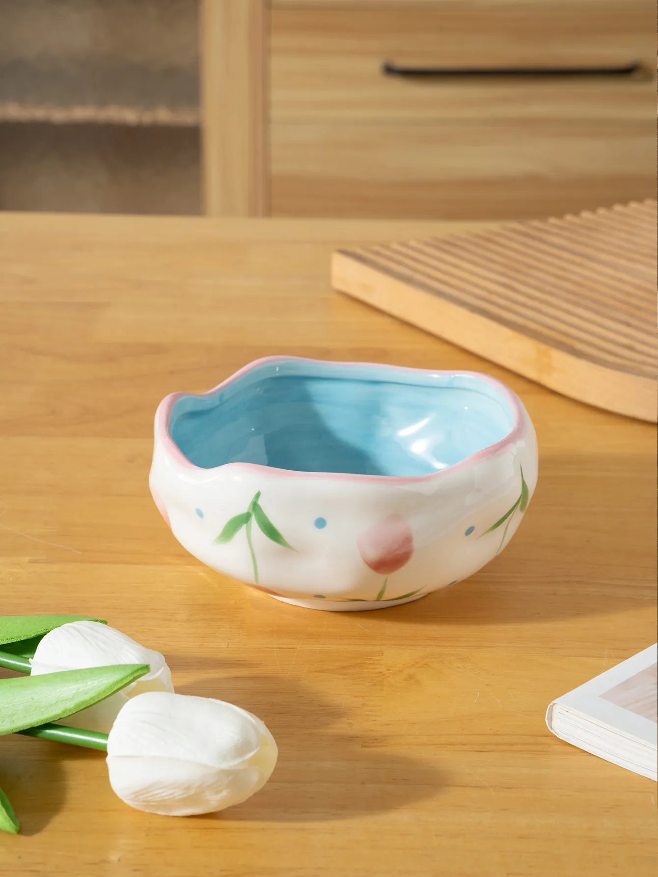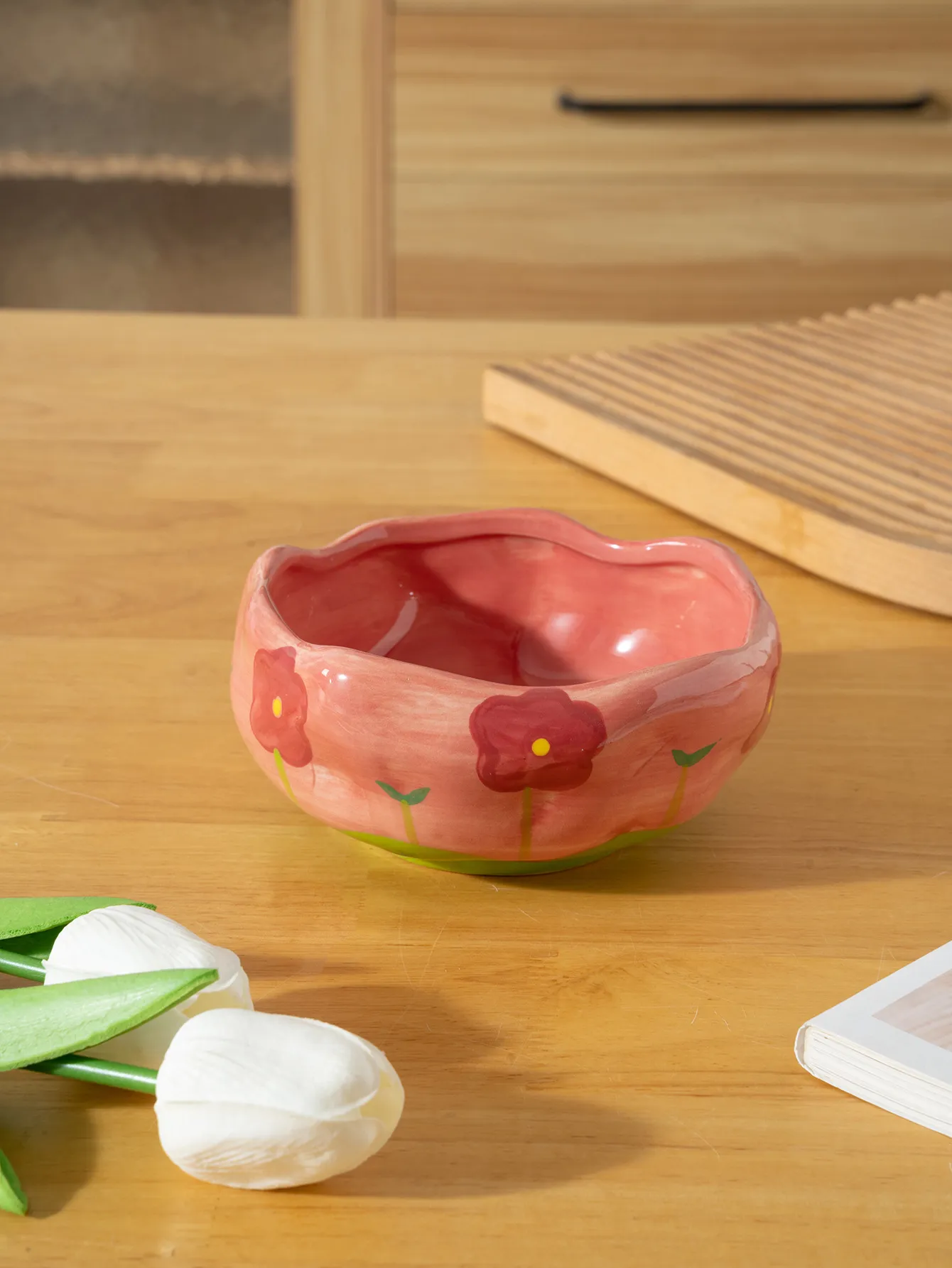 Irregular Hand Drawn Flowers Print Household Ceramic Bowl