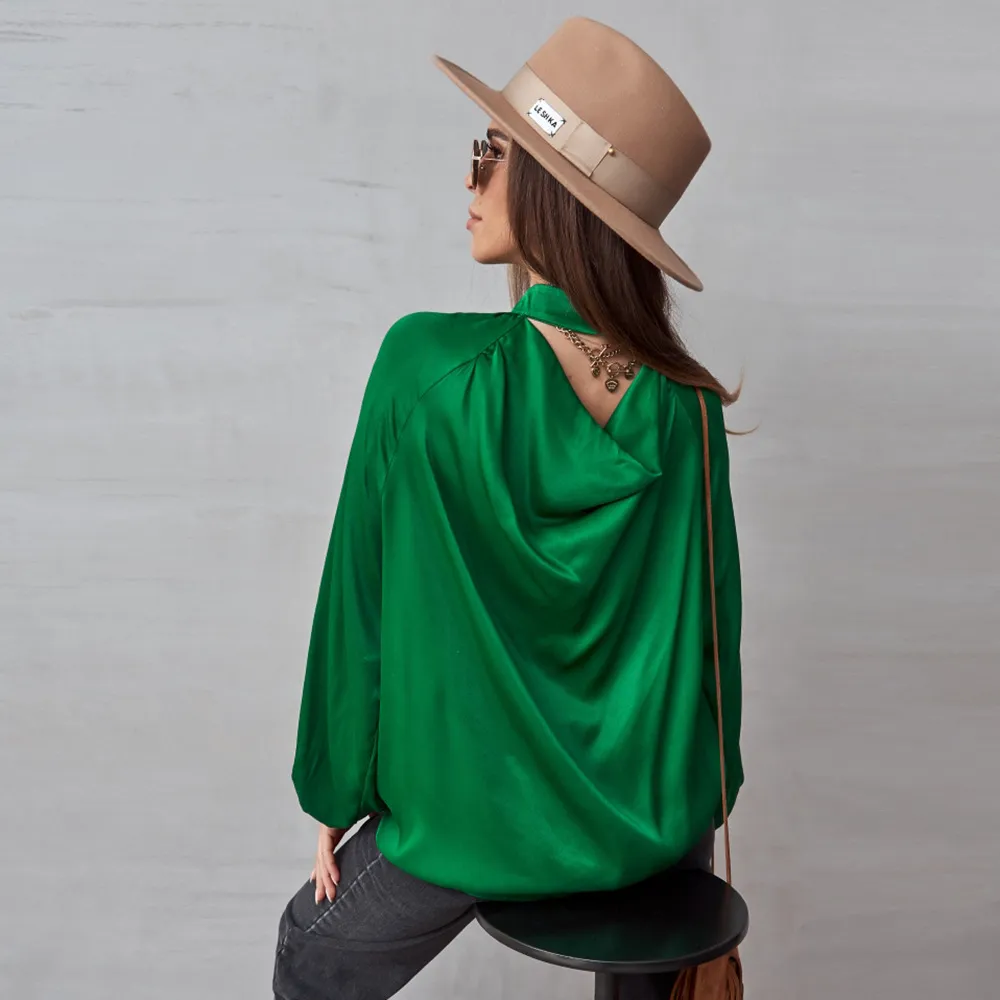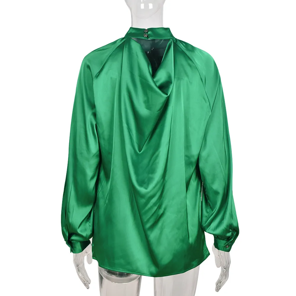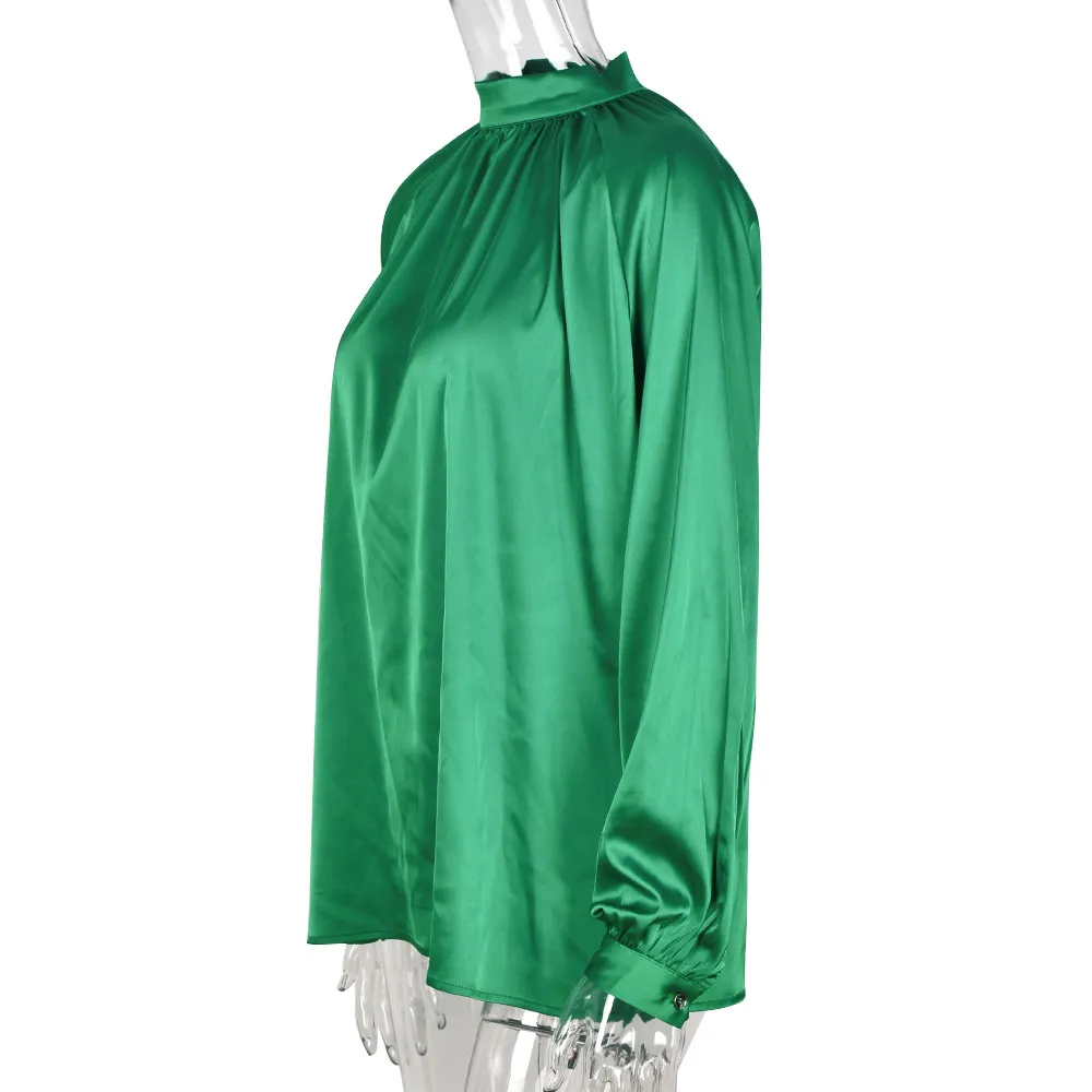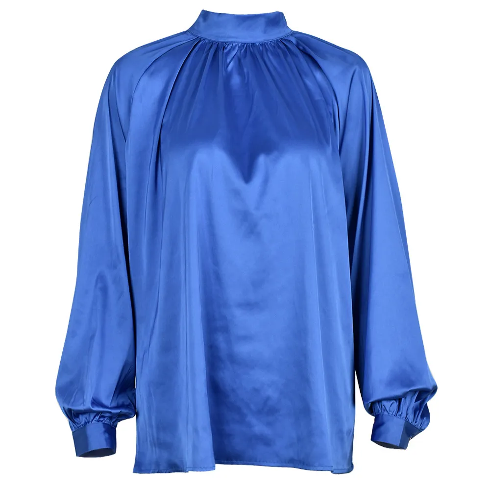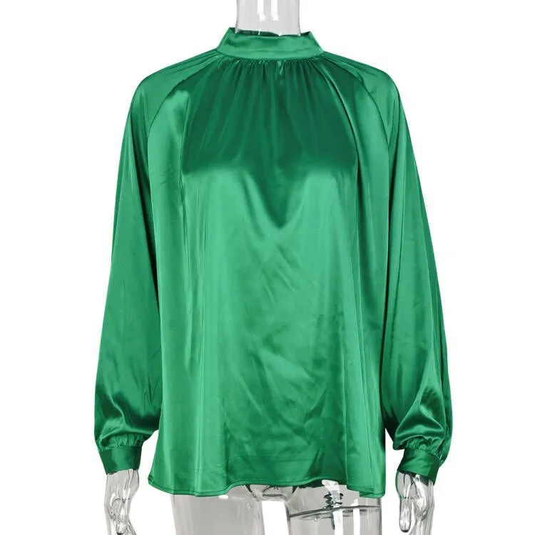 Irregular Stand Collar Stitching Lantern Sleeve Shirt Top