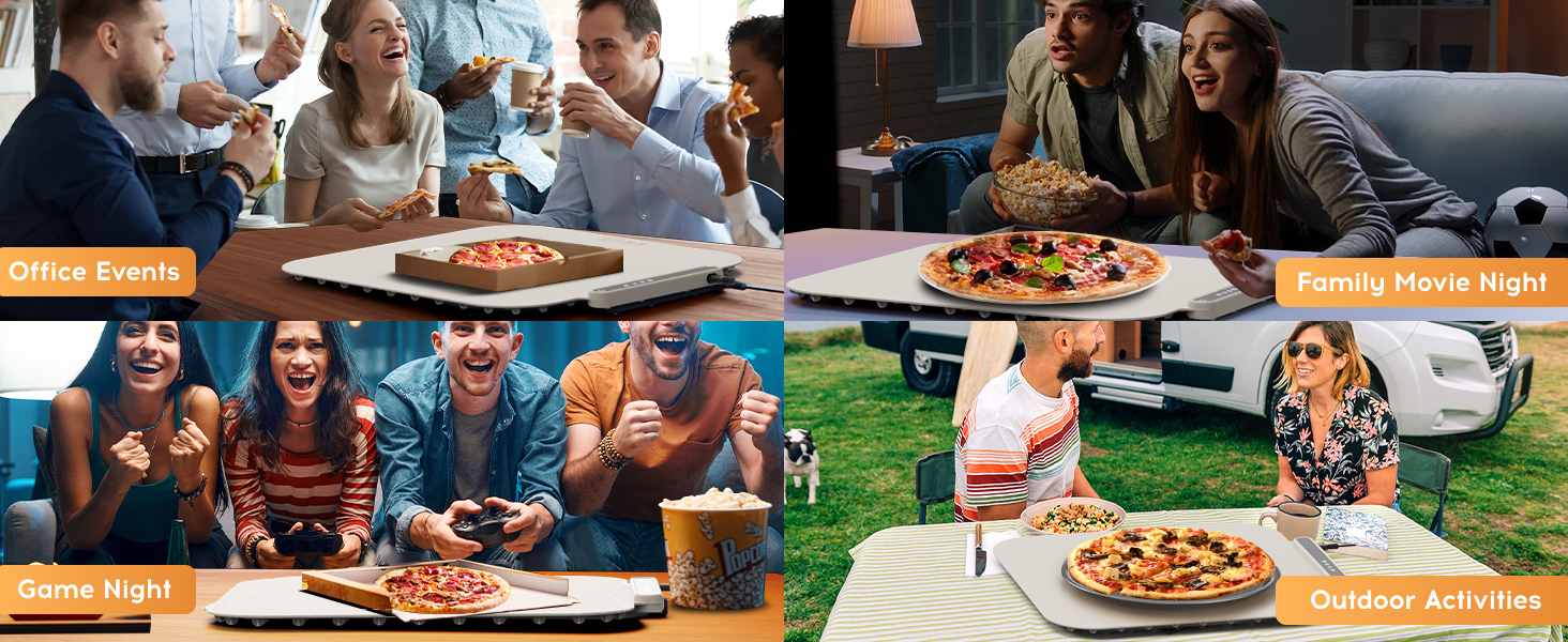 - Parties and Gatherings: Keep appetizers, side dishes, and main courses warm and ready to serve throughout the event. The full surface heating ensures each dish stays warm, making it perfect for buffets, parties, and gatherings.