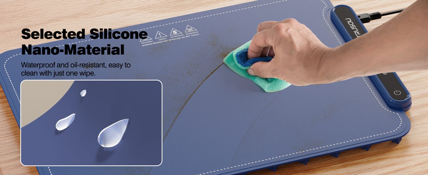 Crafted from high-quality, durable materials, this warming mat is built to last. Its smooth surface is easy to wipe clean, so you can