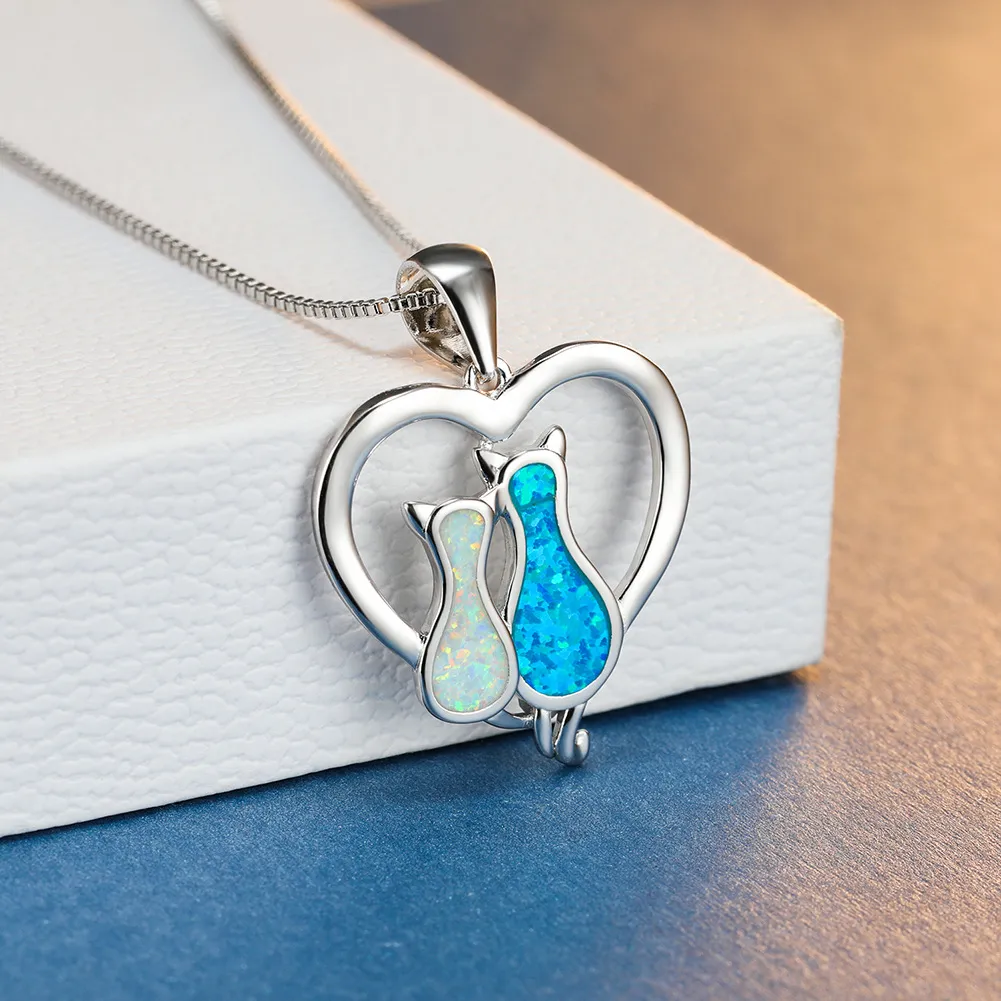 Japanese Cute Cat Opal Pendant Necklace