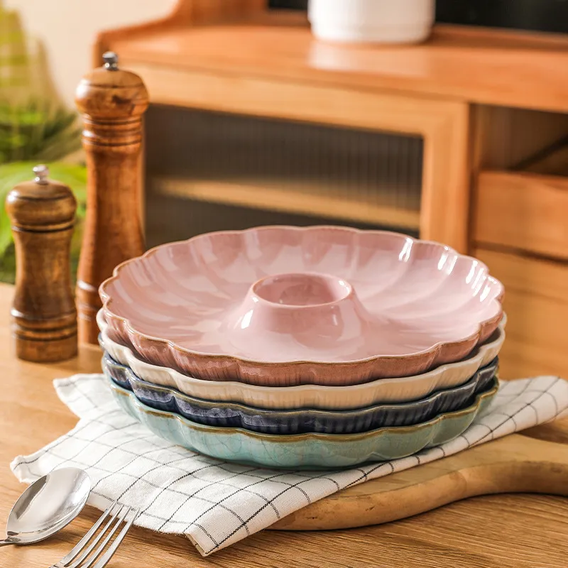 The Japanese Petal Dumplings with Vinegar Dish is not just a serving dish—it's a conversation piece. Its beautiful design reflects the grace and subtlety of Japanese culture, making it an excellent choice for special occasions, holiday meals, or a dinner with family and friends.The combination of function and beauty makes this dish a perfect addition to any kitchen, adding a touch of traditional Japanese artistry to your dining table.