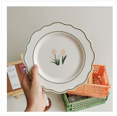The Japanese Style Tulip Ceramic Flat Plate Cute Small Dinner Plate Dish combines traditional craftsmanship with