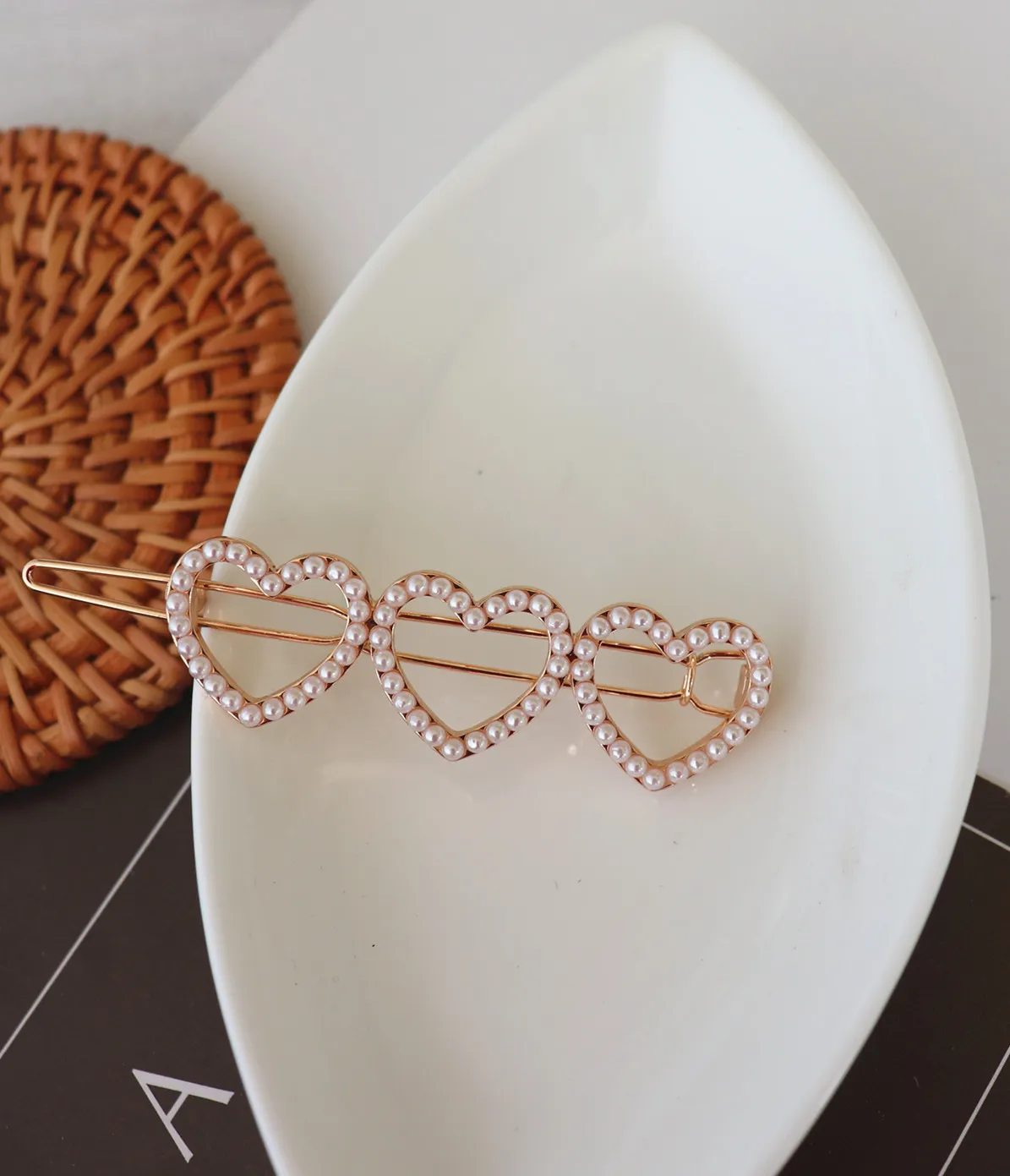Jewelry Heart Inlaid Pearl Inline Clip