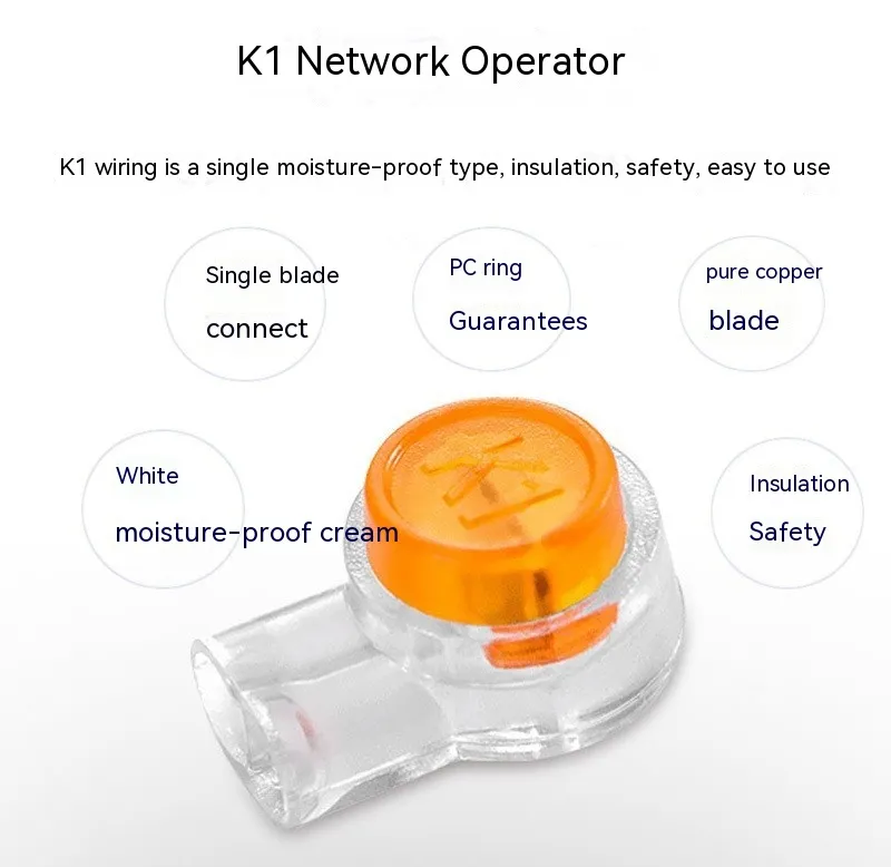 K1 connector is a single moisture-proof type, which is connected by a single knife and used for direct connection of the second line.