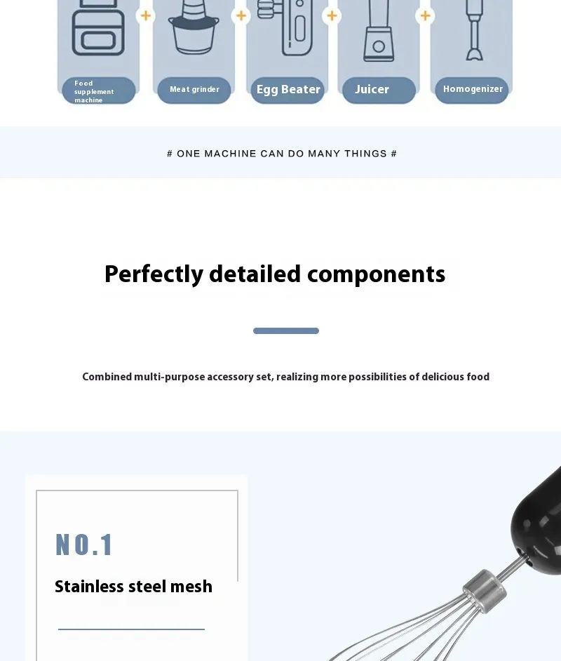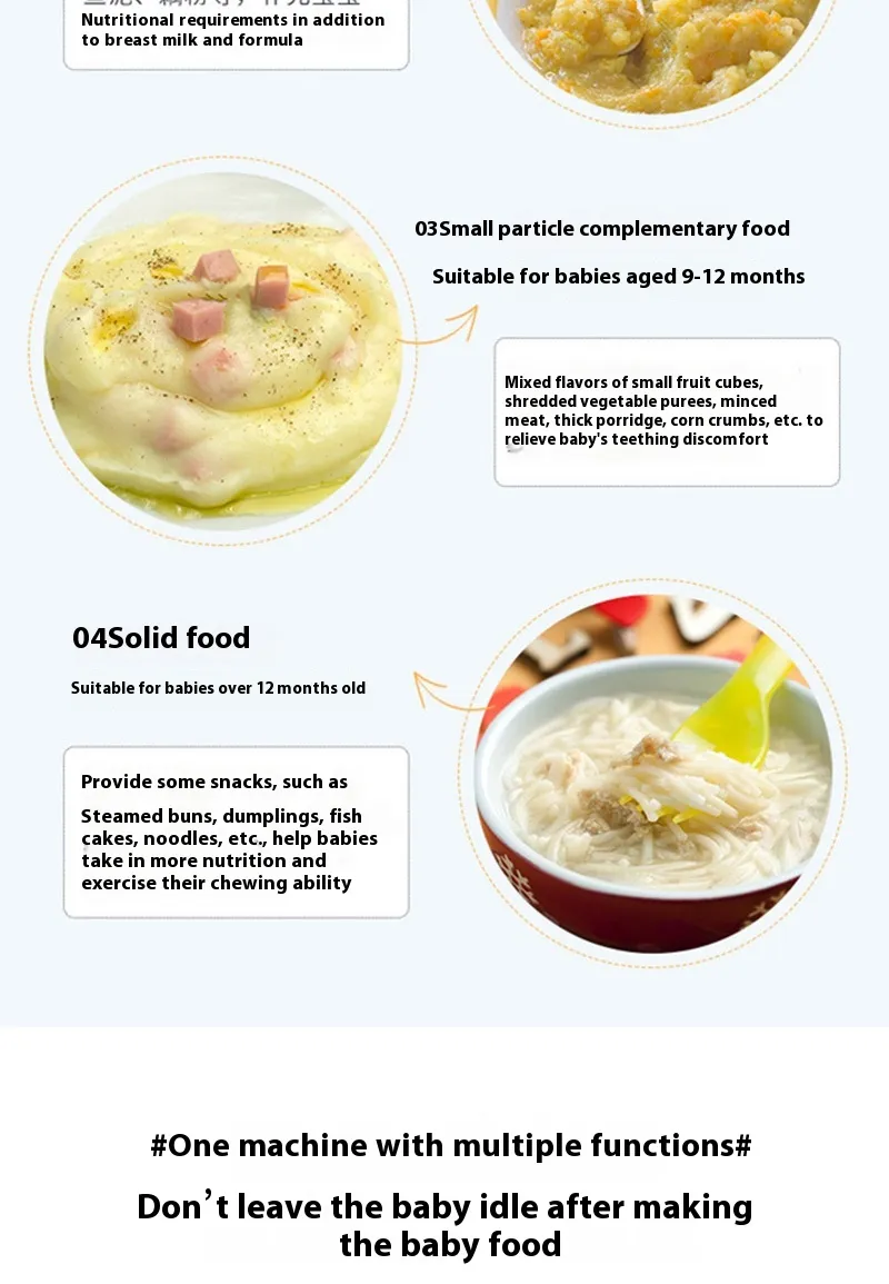 Function: baby food supplement, adjustable speed, bass noise reduction, custom menu, egg mixture