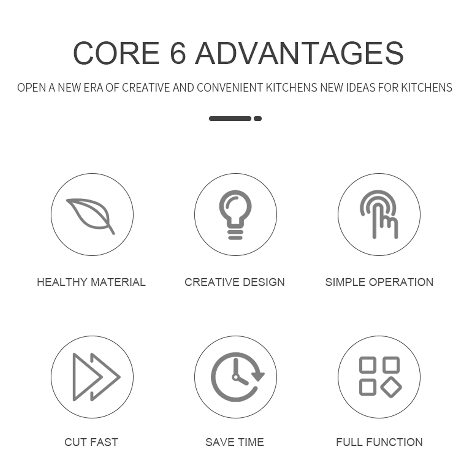 - Fast cutting: Cut and prepare vegetables in minutes instead of hours.