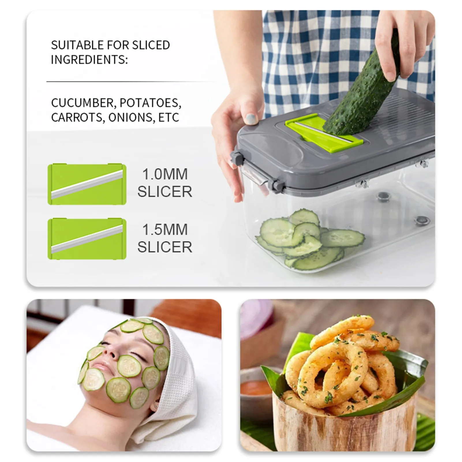 This cutter isn't limited to just vegetables; it's also perfect for fruits, cheese, and herbs. The ability to easily slice or shred a variety of ingredients makes it a versatile tool in your kitchen for creating a wide range of dishes, from salads to casseroles, stir-fries, and even desserts.