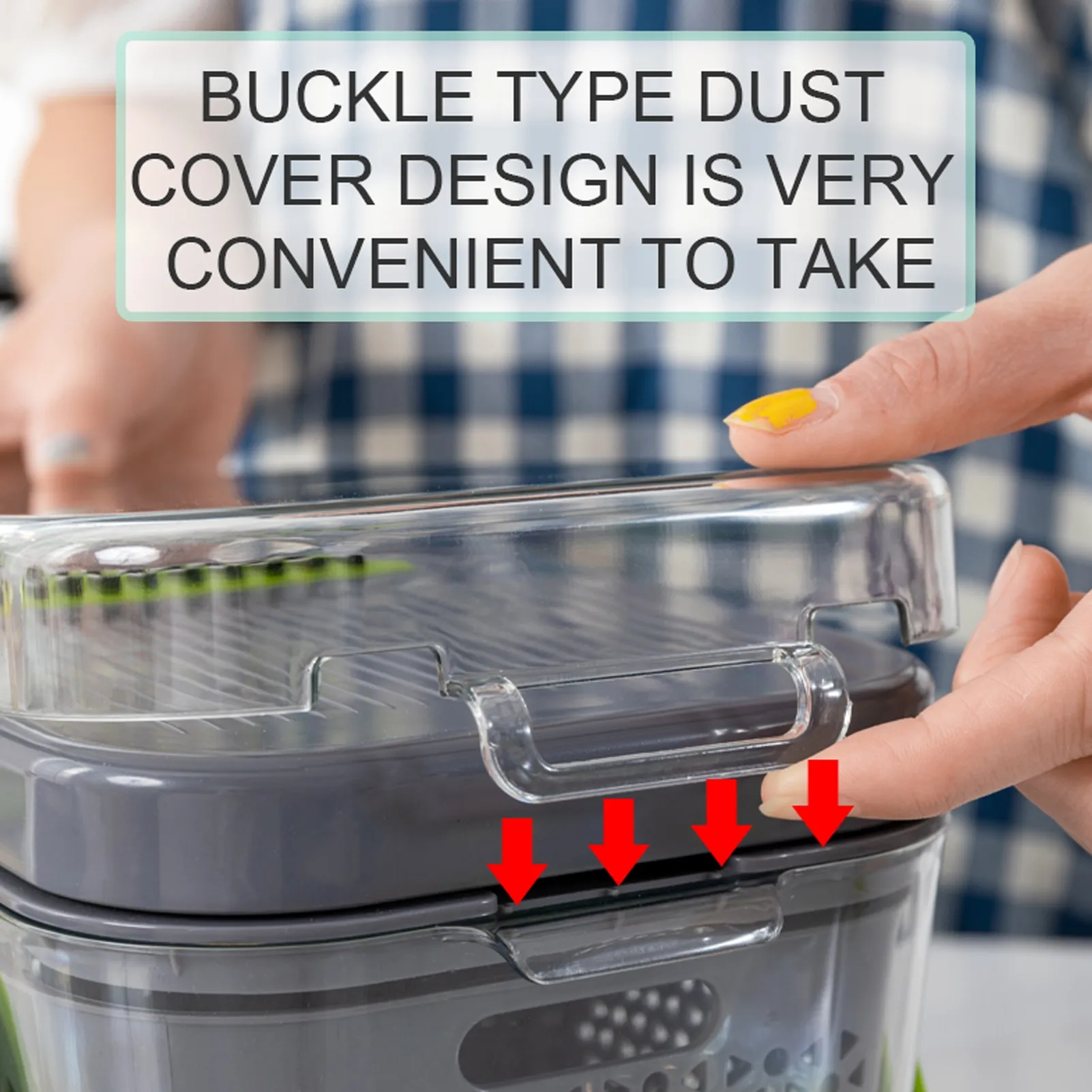 The Kitchen Multi-Function Vegetable Cutter is a must-have appliance for anyone looking to speed up their food preparation while ensuring consistent and precise cuts every time. Whether you're preparing a salad, stir-fry, or chopping ingredients for soups and stews, this versatile cutter allows you to slice, dice, julienne, and shred vegetables in a fraction of the time compared to using a knife. Ideal for busy home cooks, meal preppers, or anyone looking to improve their kitchen efficiency, the multi-function vegetable cutter will quickly become your favorite kitchen companion.Designed to handle a variety of tasks, this cutting tool is built with practicality and space-saving features in mind, making it suitable for all kitchen sizes. Say goodbye to messy chopping and hello to neatly cut vegetables, fruits, and more with this innovative kitchen tool.