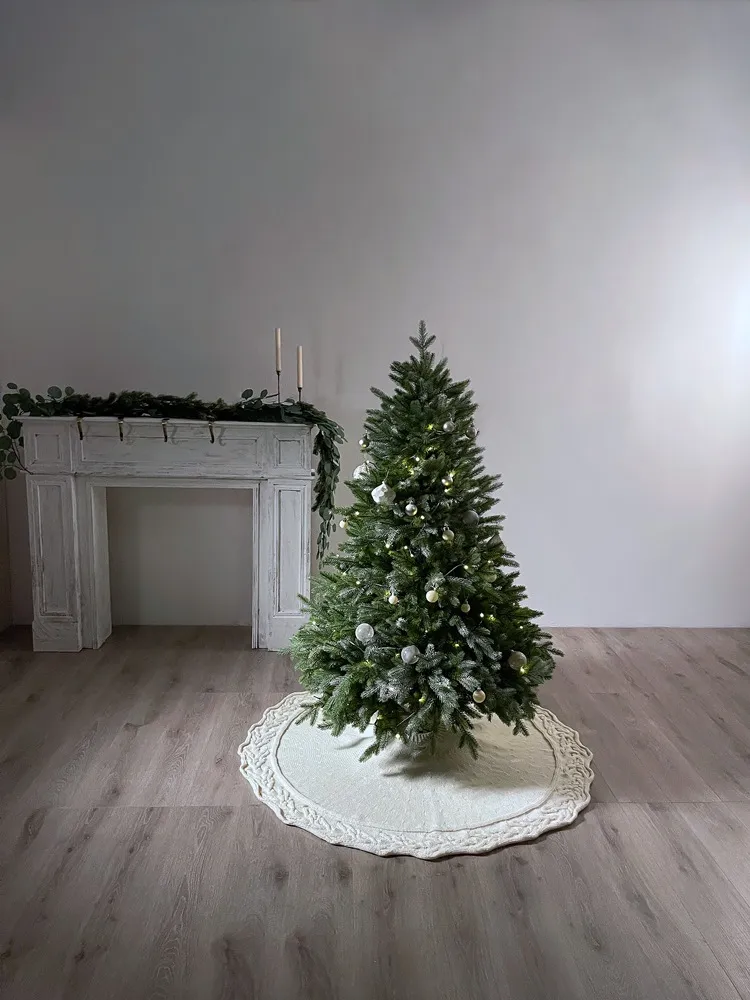 This apron not only adds a decorative touch but also serves a functional purpose. It effectively hides the tree stand and any visible wires at the base of the tree, creating a clean and polished look. With this apron, you can enjoy a tidy, beautifully finished tree without the clutter of unsightly stands or cords.