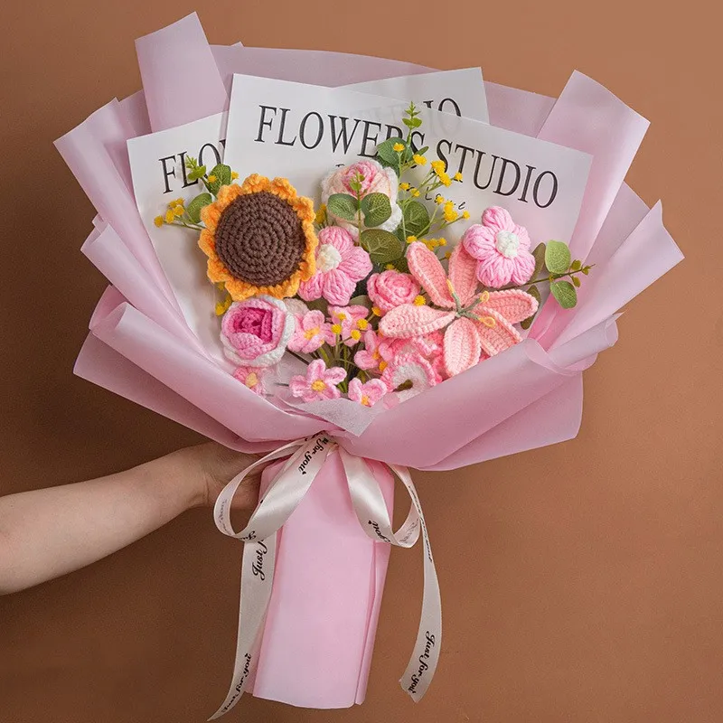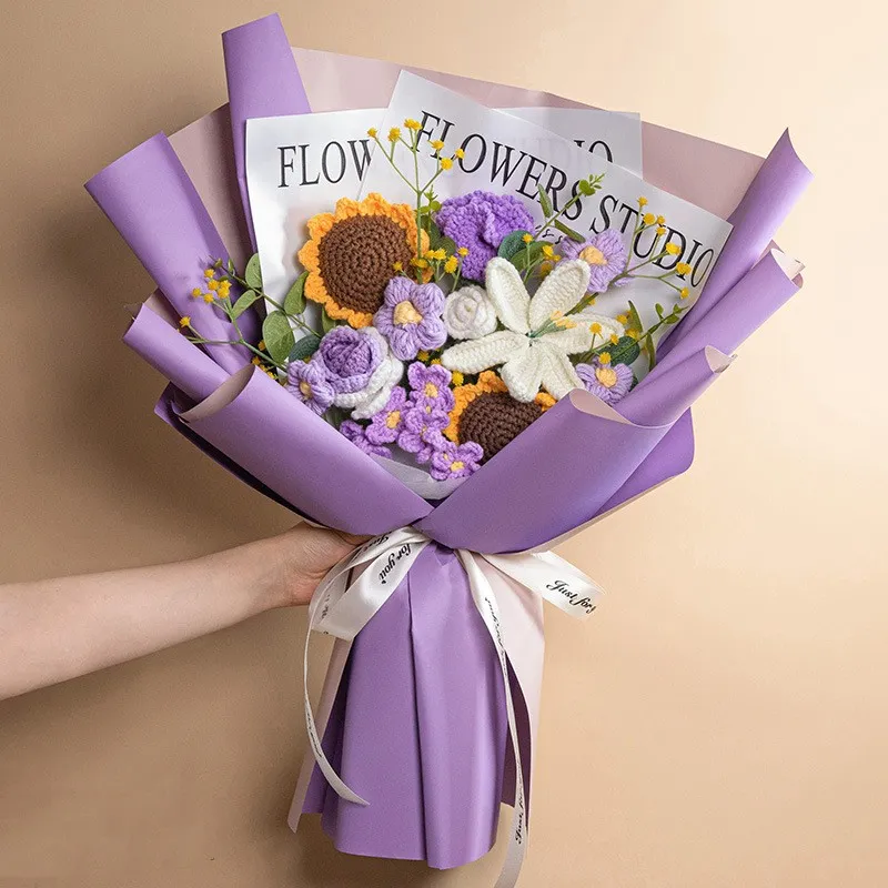 Each knitted wool bouquet is a handcrafted masterpiece, made with attention to detail and precision. The process involves carefully knitting individual flowers and arranging them into a beautiful bouquet. This handmade technique ensures that each bouquet is unique, giving you a one-of-a-kind accessory that stands out from the traditional floral arrangements. The art of knitting adds texture and depth to the flowers, giving them a soft, elegant appearance that cannot be replicated by machine-made products.