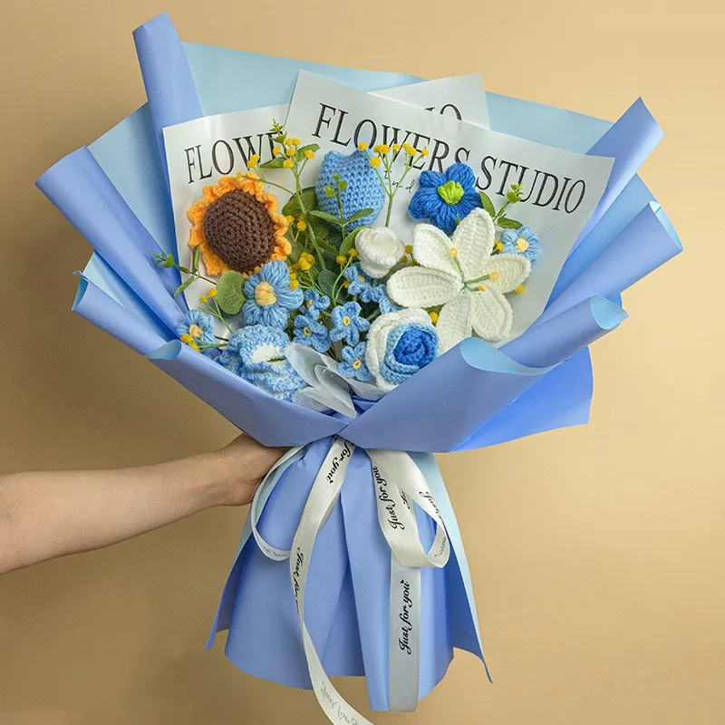 Each knitted wool bouquet is a handcrafted masterpiece, made with attention to detail and precision. The process involves carefully knitting individual flowers and arranging them into a beautiful bouquet. This handmade technique ensures that each bouquet is unique, giving you a one-of-a-kind accessory that stands out from the traditional floral arrangements. The art of knitting adds texture and depth to the flowers, giving them a soft, elegant appearance that cannot be replicated by machine-made products.