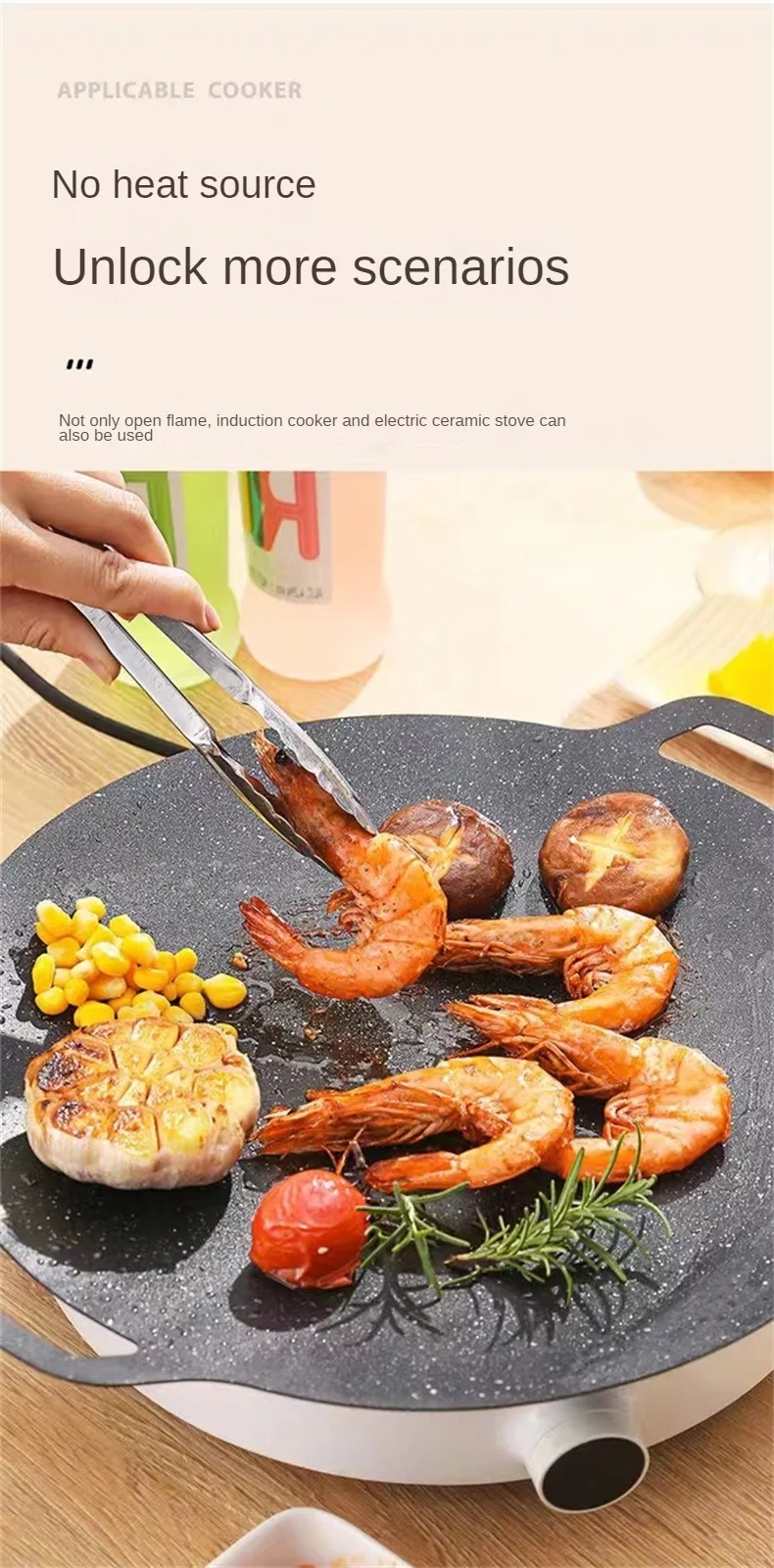 Korean Grill Pan with Nonstick Round BBQ Griddle,Compatible for Induction,Gas Stove,Electric Cooktop, Kitchen Utensils