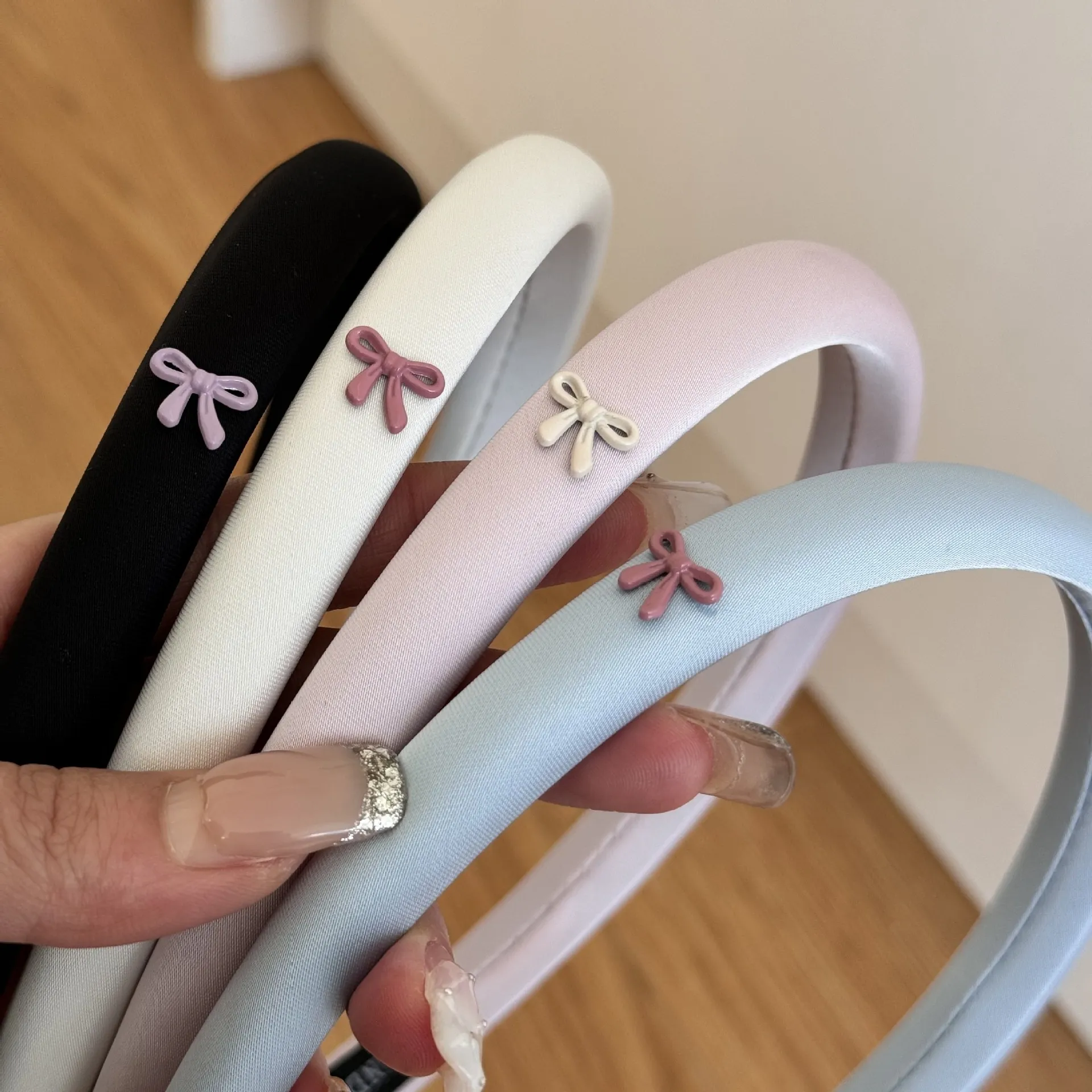 Color: pink bow headband, black bow headband, blue bow headband, beige bow headband