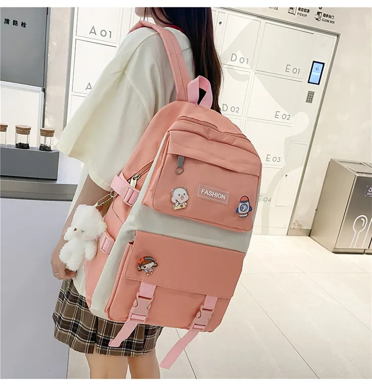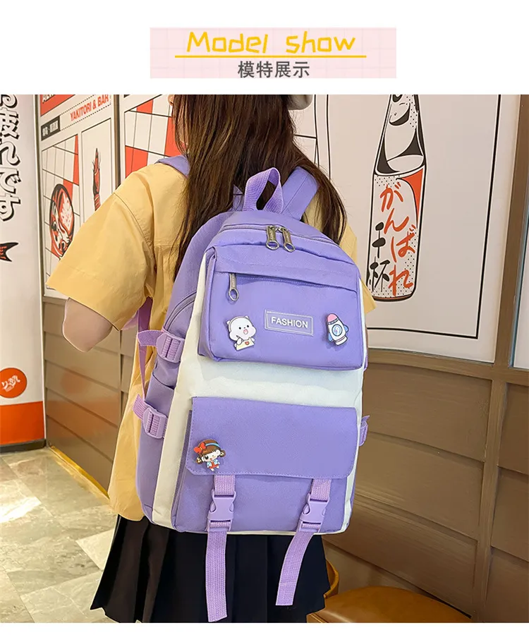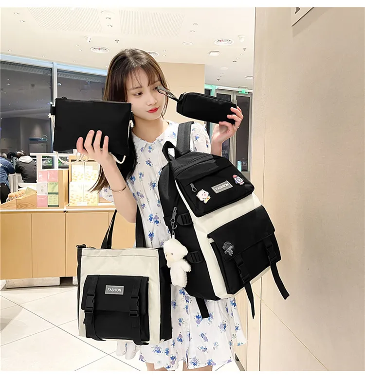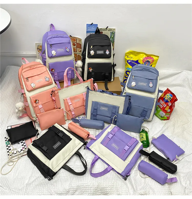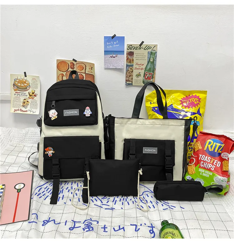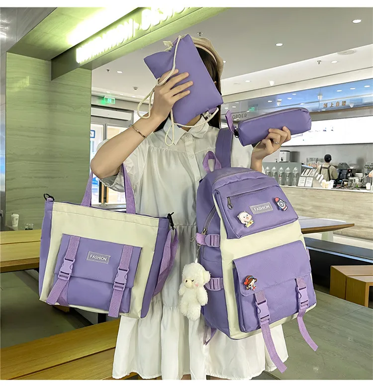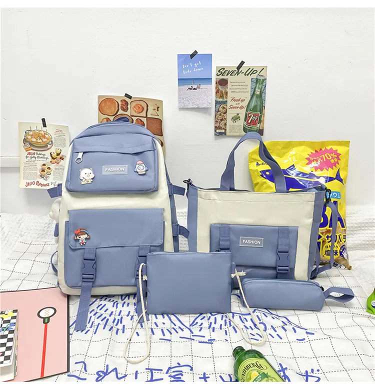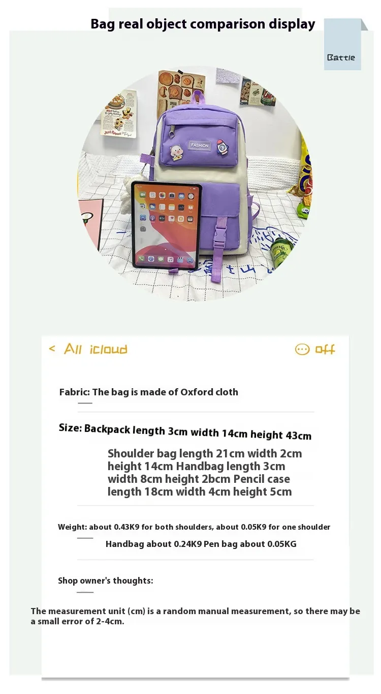 Korean Style Mori Casual Oxford Cloth Student Four-piece Set Backpack