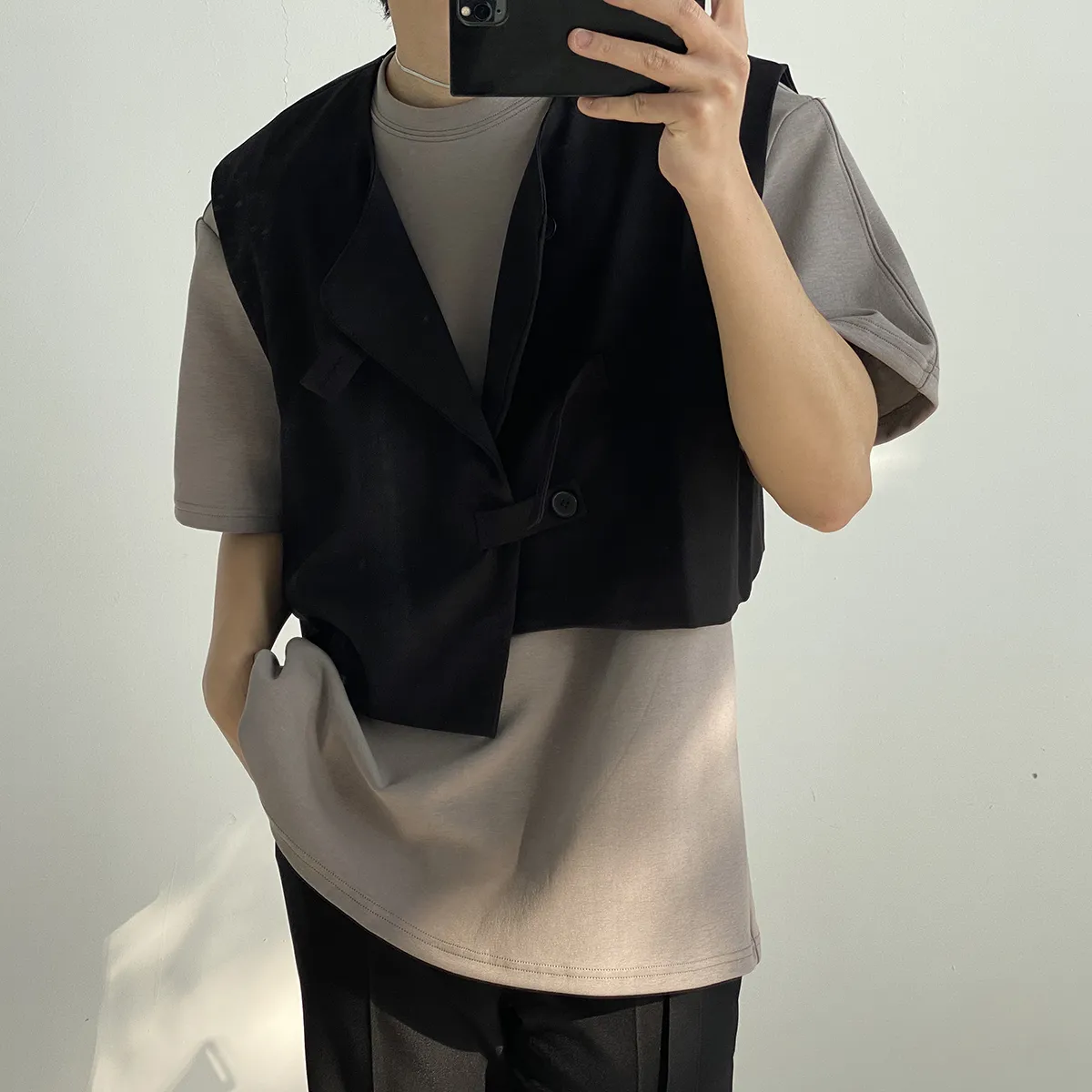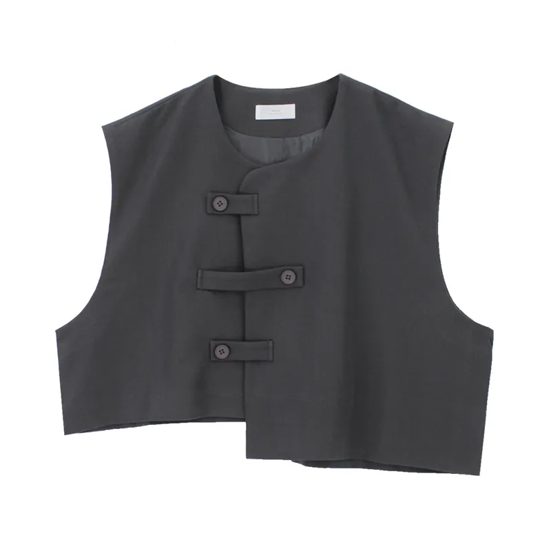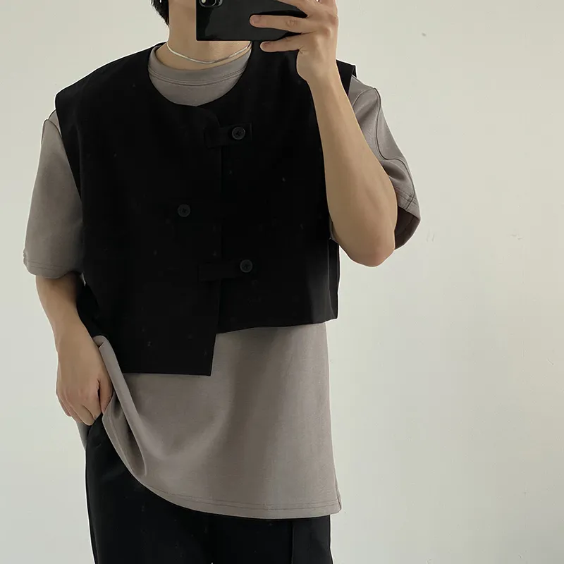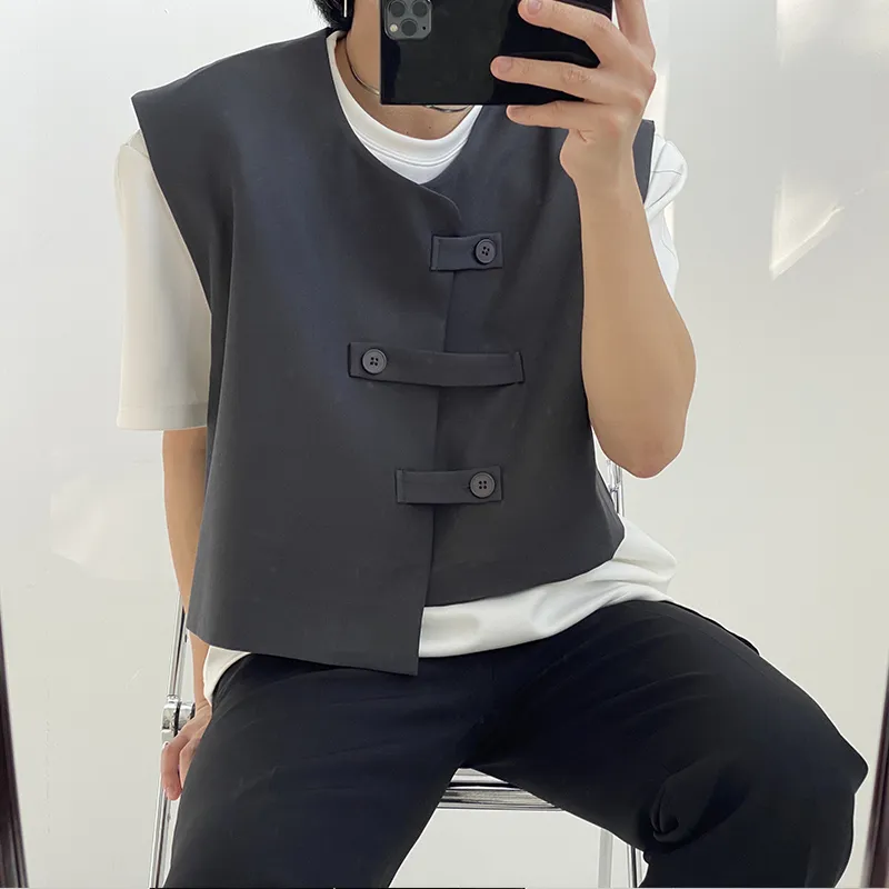 Korean Vest With Placket Left And Right Buckle