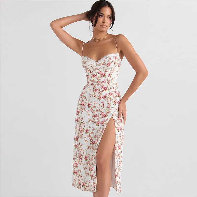 Versatility This dress is incredibly versatile, making it an essential addition to your summer wardrobe. Pair it with sandals and a sunhat for a chic daytime look, or dress it up with heels and statement jewelry for a glamorous evening out. The combination of lace, floral print, and the slit makes this dress suitable for a wide range of occasions, from casual beach days to more formal summer soirées.