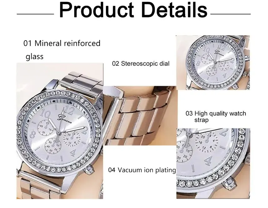 The gold crystal diamond women’s watch is a versatile piece that seamlessly transitions from day to night. Pair it with business attire for a polished professional look, or wear it with your favorite evening dress for a touch of elegance. This watch is the ideal fashion accessory that effortlessly complements a variety of styles, making it a must-have in any woman's jewelry collection.