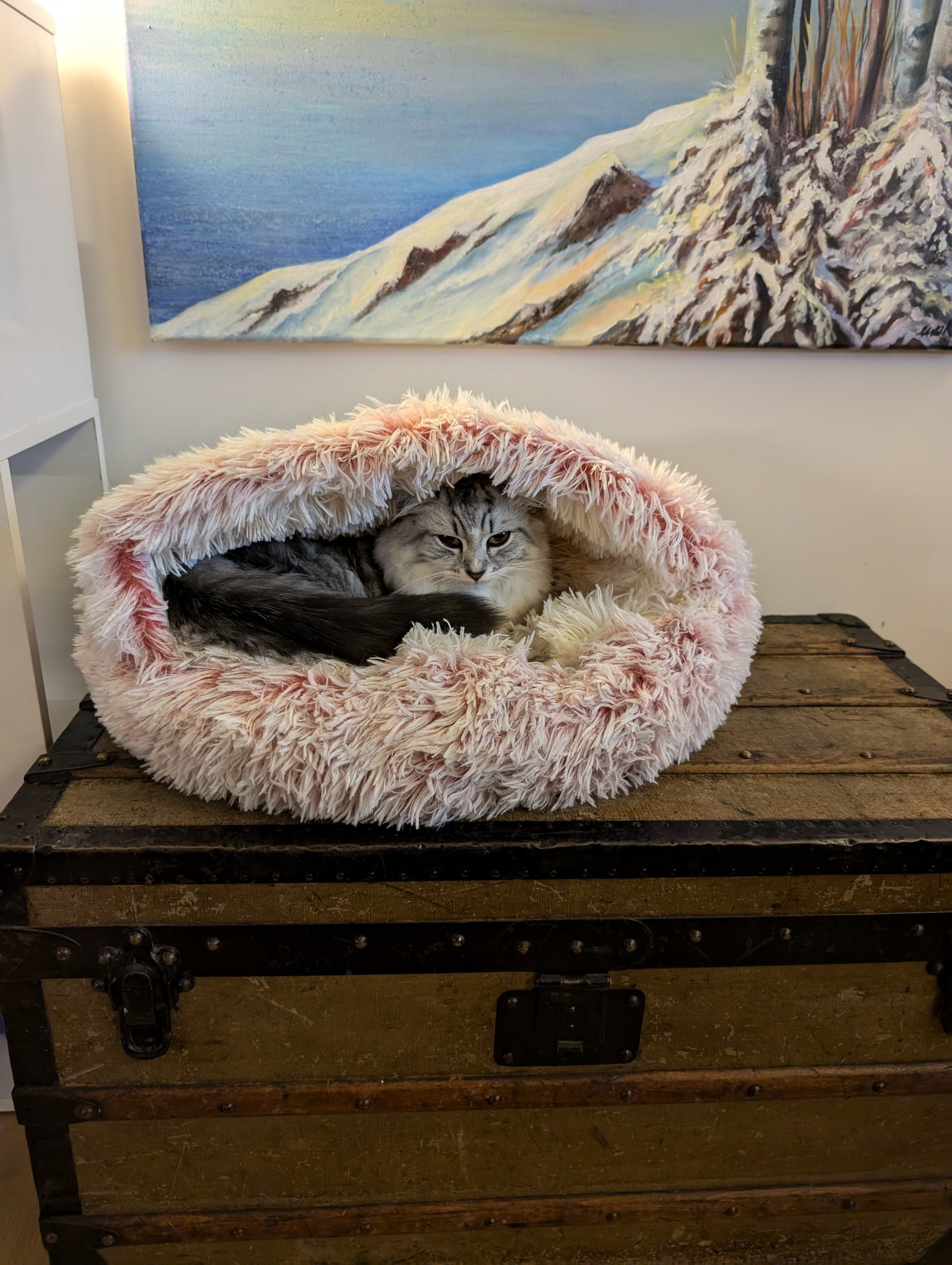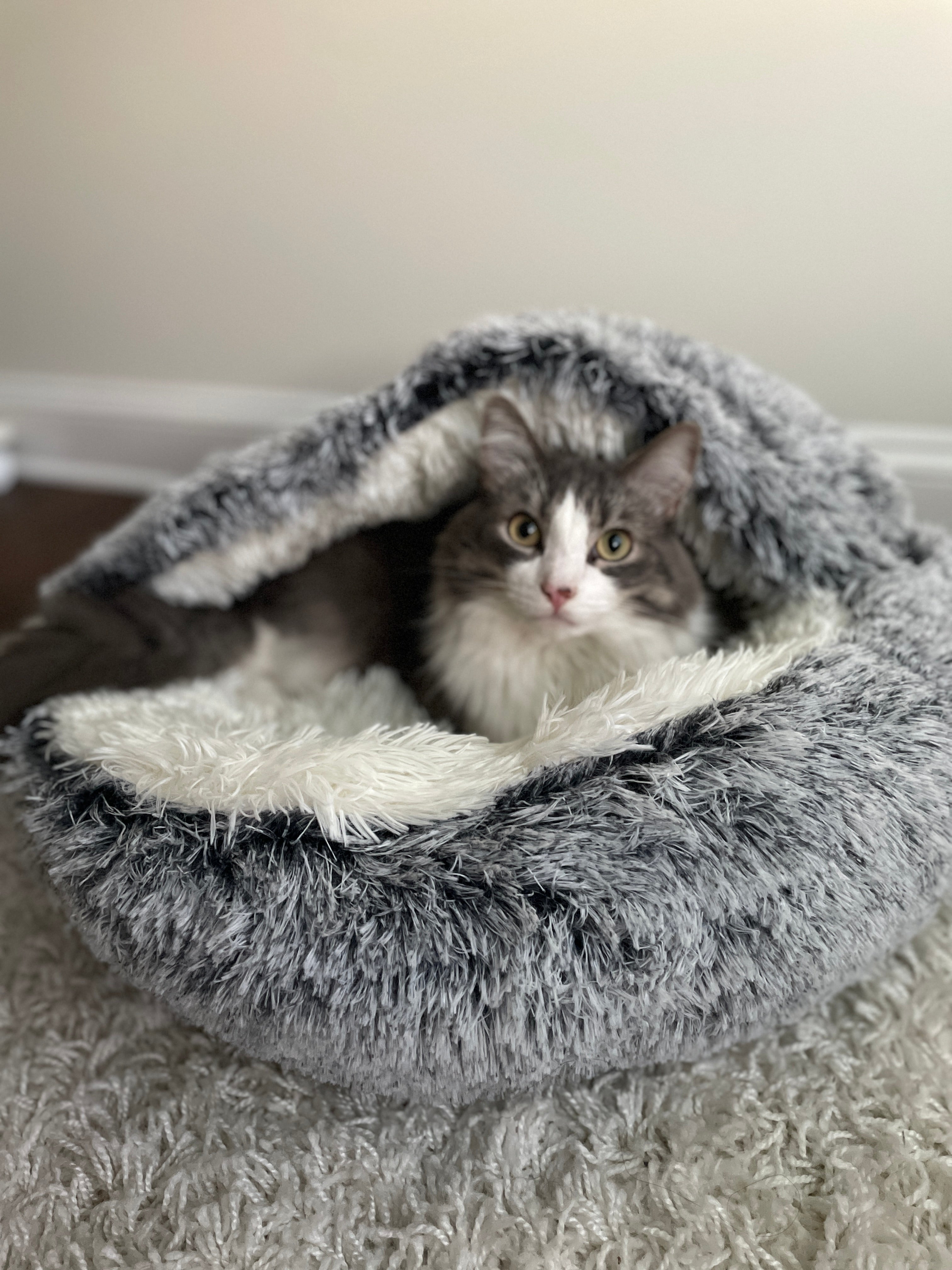 Perfect for cats who like to hide and snuggle. Shadow looks so cozy in the hideaway style bed, it’s a dream for him!