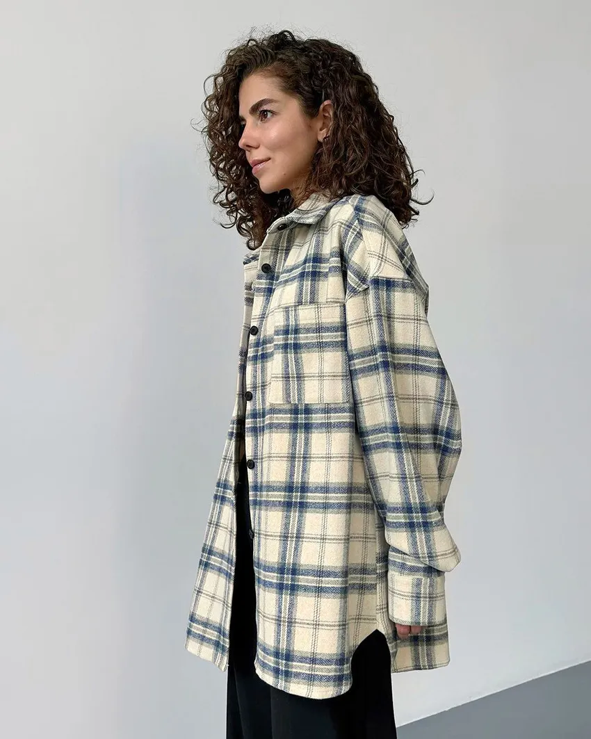 Pair this shirt with jeans, chinos, or leggings for a laid-back look, or dress it up with a blazer or jacket for a more polished, street-style outfit. Whether you're running errands, hanging out with friends, or enjoying a casual day out, the Lapel Loose Plaid Long Sleeve Shirt will effortlessly complement your style while providing all-day comfort.