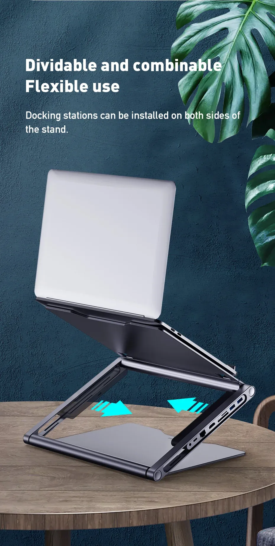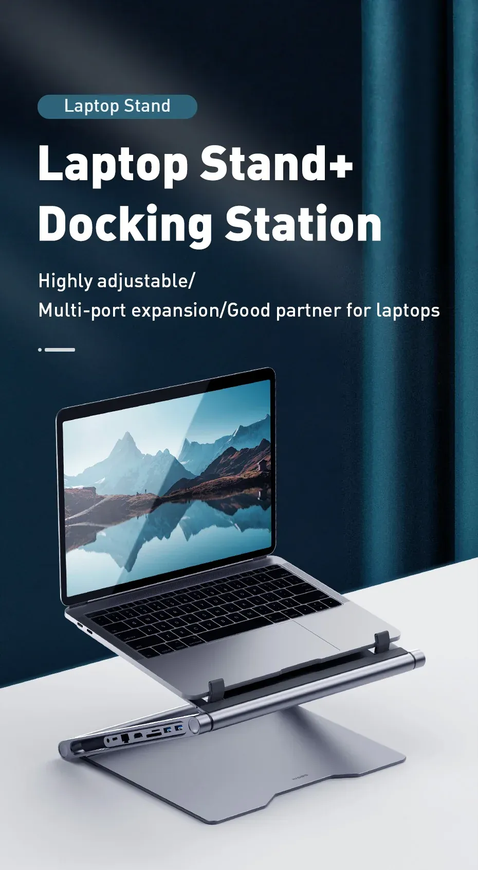 Made from premium aluminum alloy, it offers stability and durability while preventing overheating with its ventilated design. The 8-in-1 docking station includes USB ports, HDMI, SD/microSD card slots, and more, making it the perfect all-in-one solution for modern professionals.