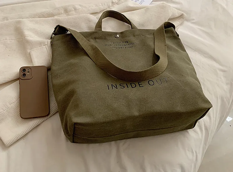 Large-capacity Canvas Bags Women Casual Fashion Totes Alphabet Print Shoulder Bag With Adjustable Strap Retro Handbag For Shopping