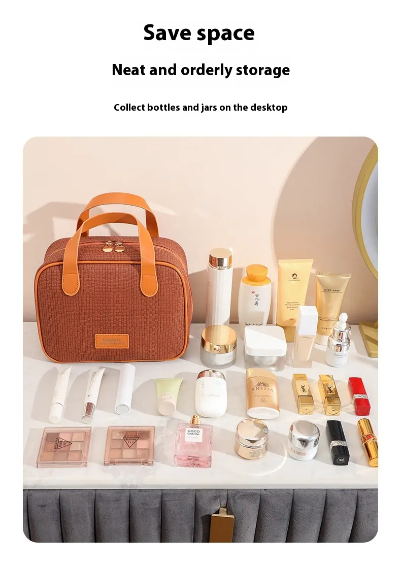 When you're on the go, the cosmetic storage bag is the ideal travel companion. Its large capacity allows you to carry everything you need for a weekend getaway or a longer vacation, and its compact design ensures it fits easily in your suitcase or carry-on bag.