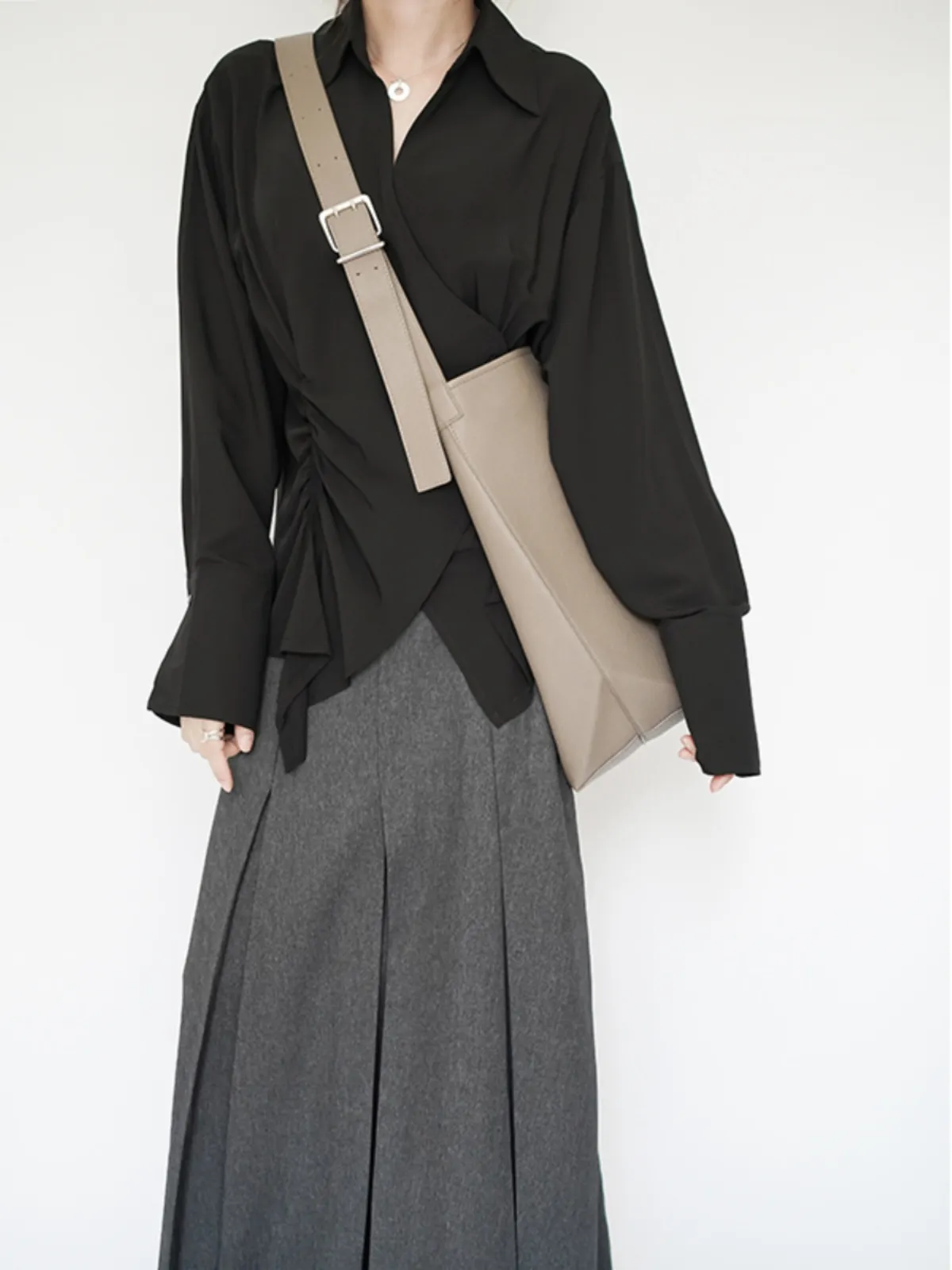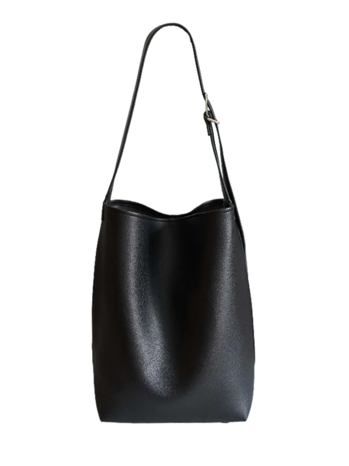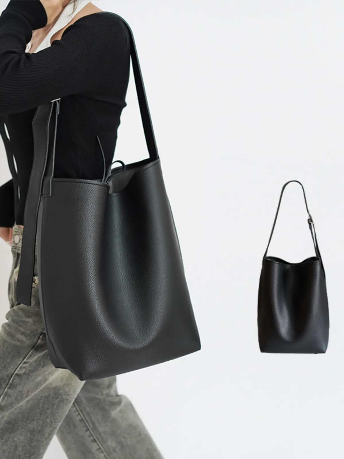 Large Capacity Solid Color Simple Lychee Pattern Bucket Bag