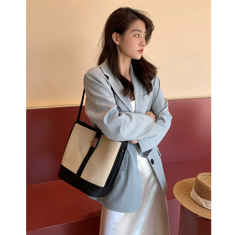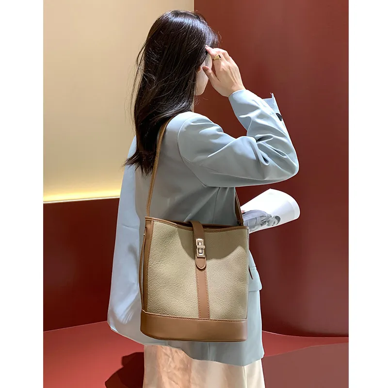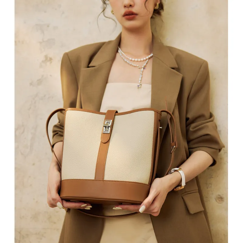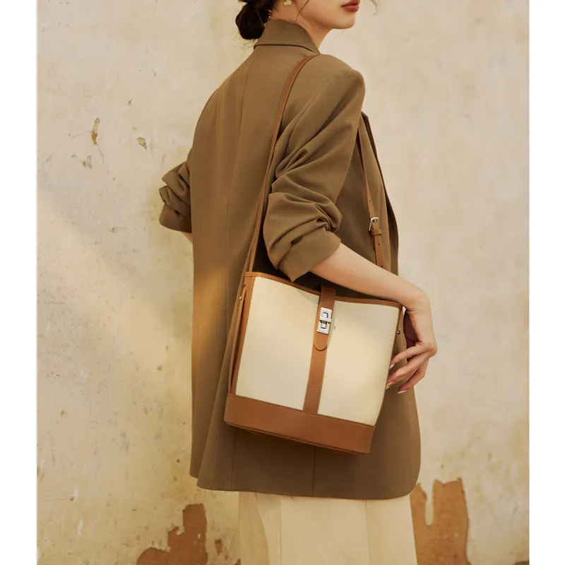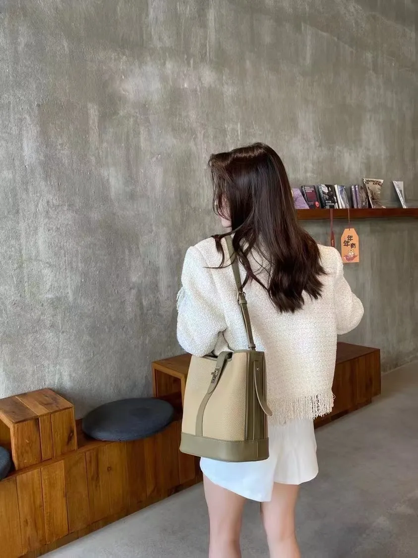 Large Capacity Women's Cowhide Bucket Shoulder Bag